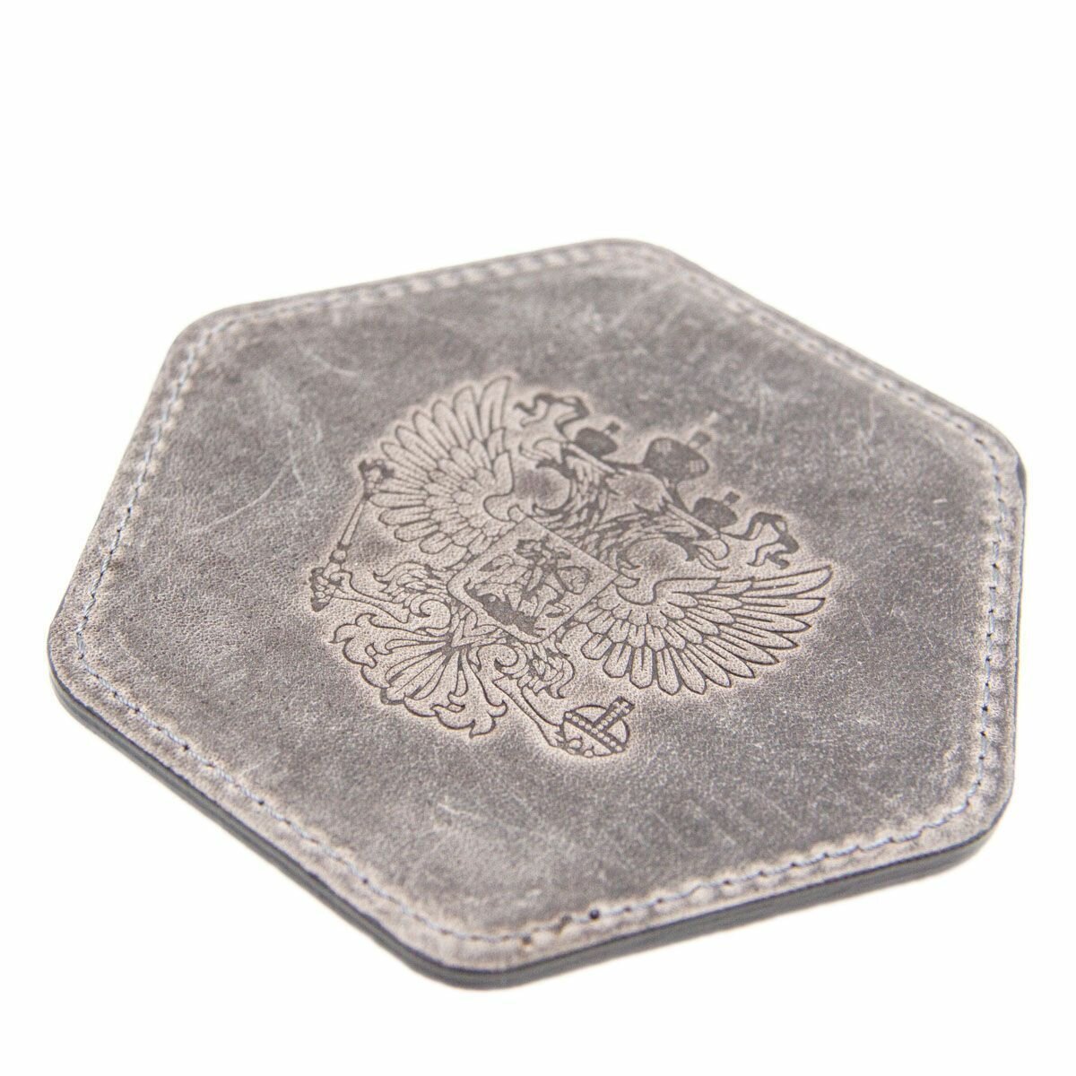 Кожаный подстаканник - бирдекель для патриотов, кожаная подставка с гербом России, Corbett Rus Noir, J.Audmorr