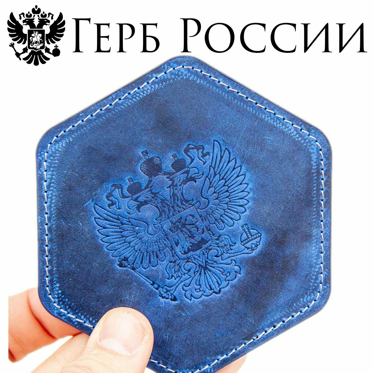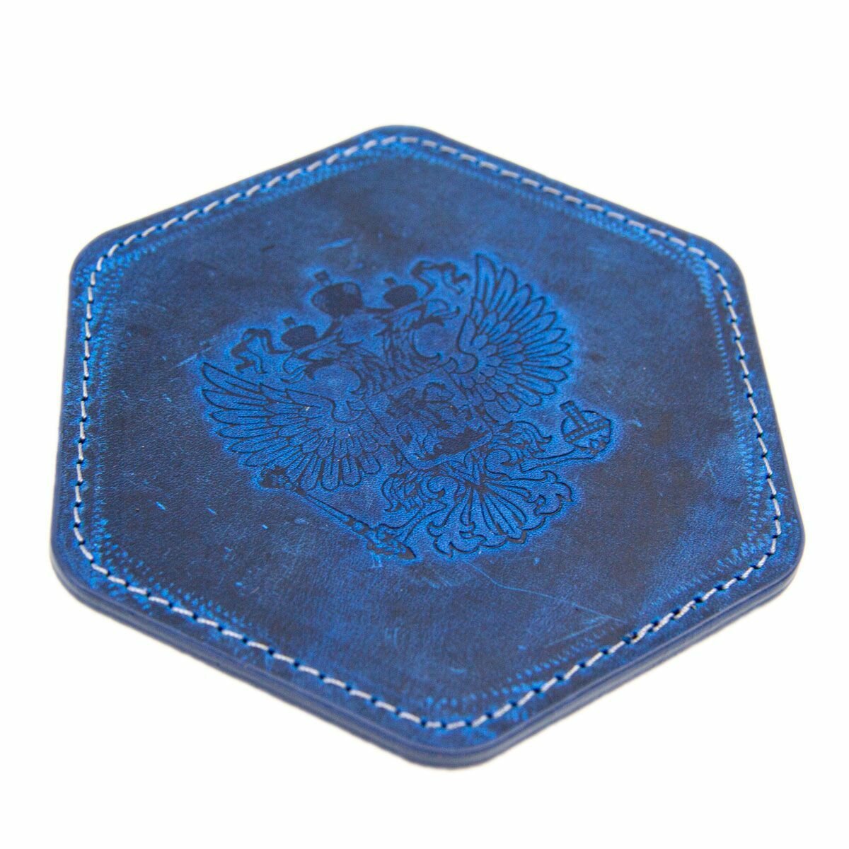 Купить Кожаный подстаканник - бирдекель для патриотов, кожаная подставка с гербом России, Corbett Rus Cobalt, J.Audmorr