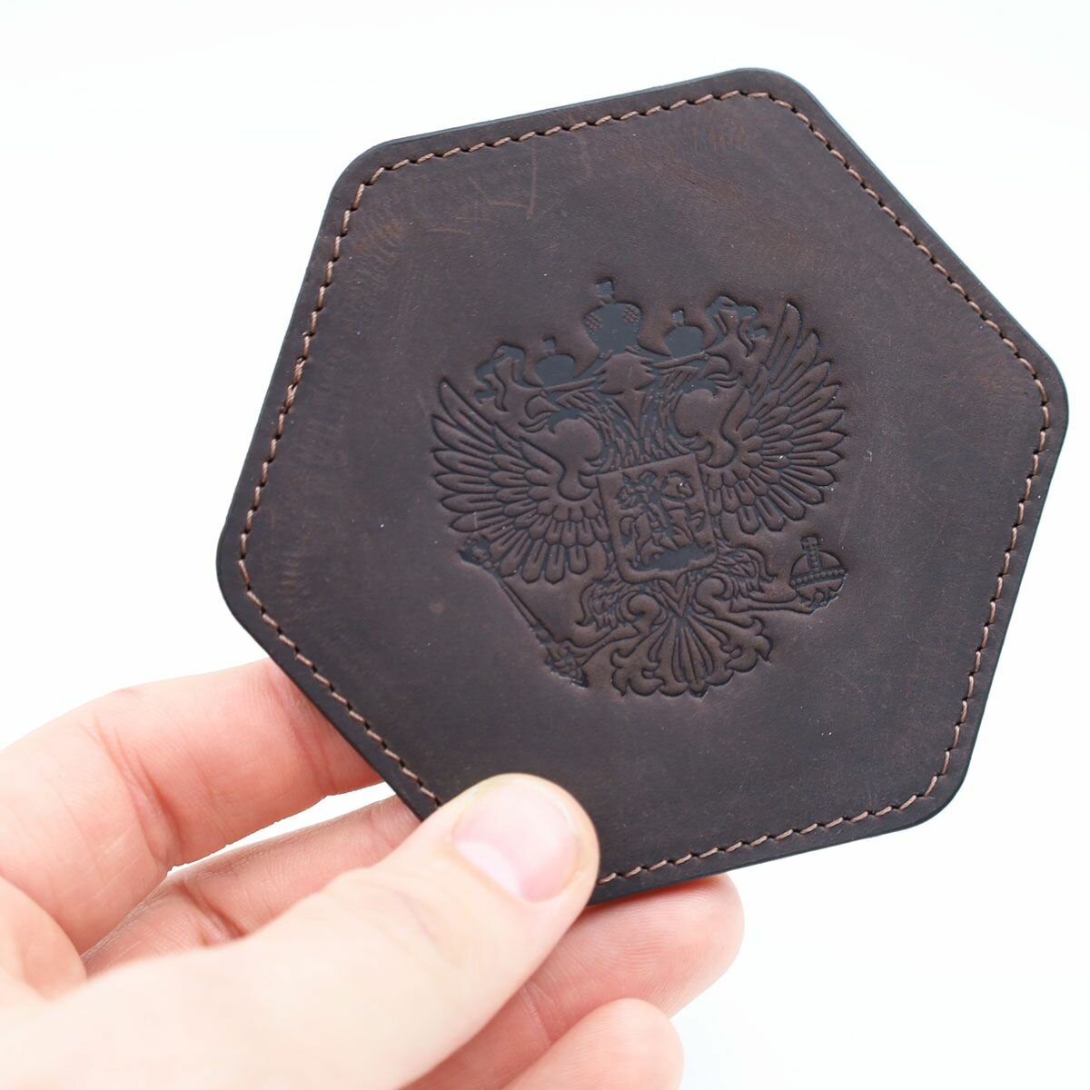 Кожаный подстаканник - бирдекель для патриотов, кожаная подставка с гербом России, Corbett Rus Pine, J.Audmorr