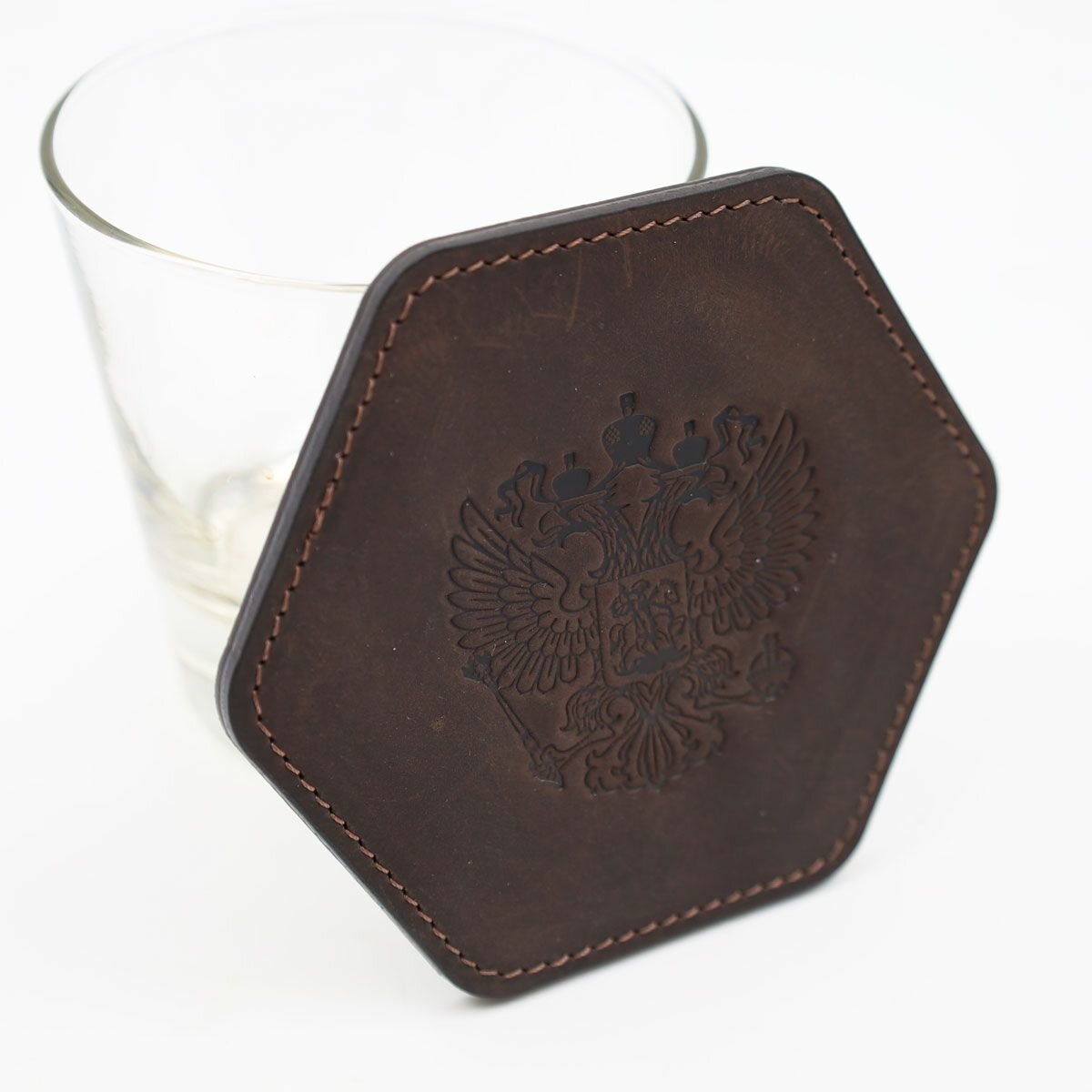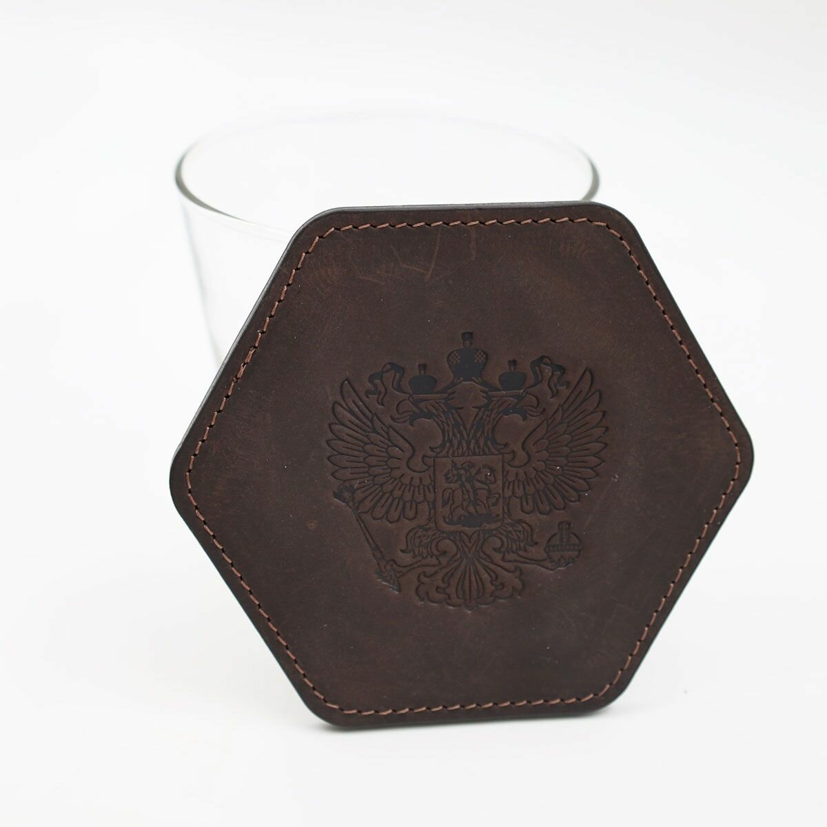 Кожаный подстаканник - бирдекель для патриотов, кожаная подставка с гербом России, Corbett Rus Noir, J.Audmorr