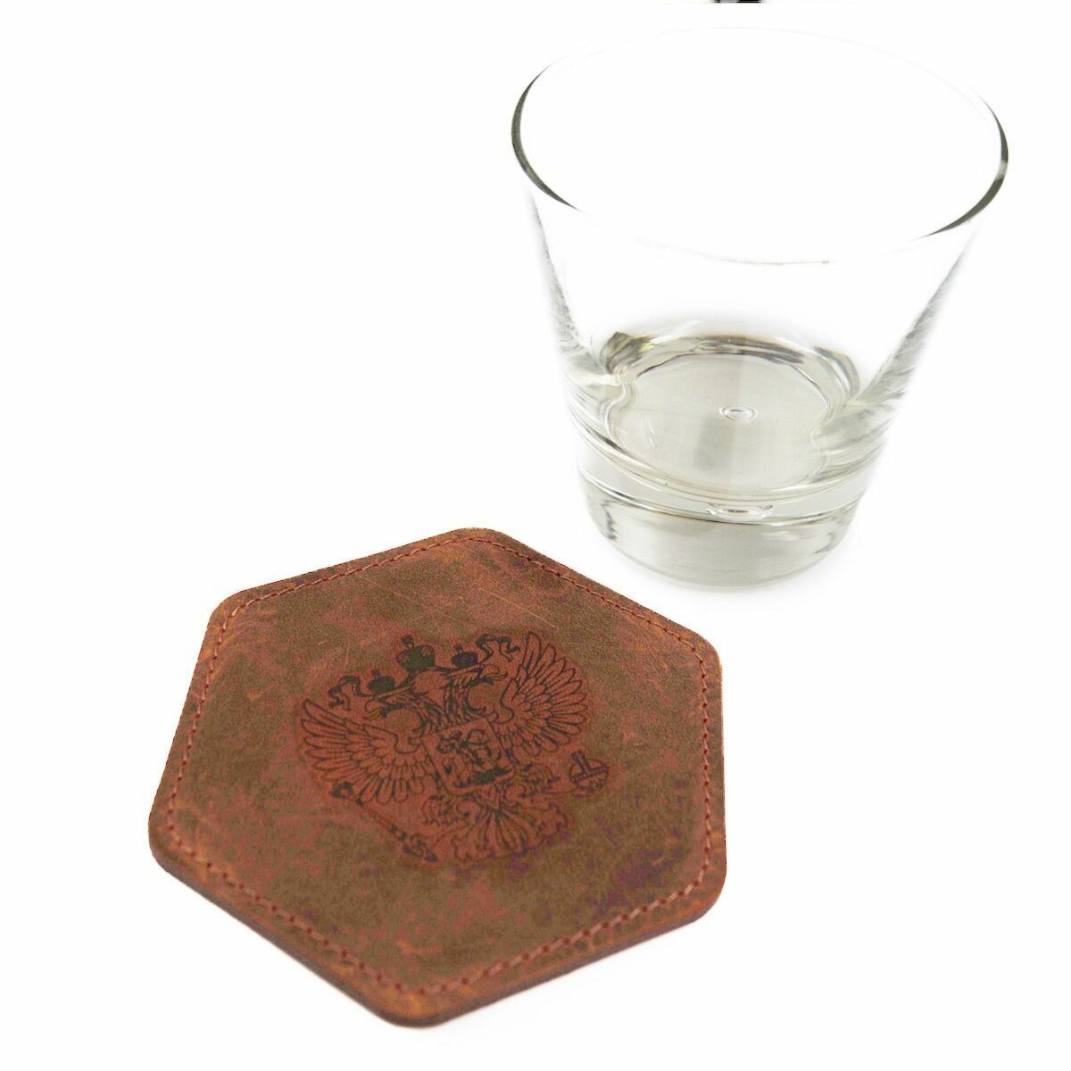 Кожаный подстаканник - бирдекель, костер с гербом России из натуральной кожи, Corbett Rus Brownee, J.Audmorr