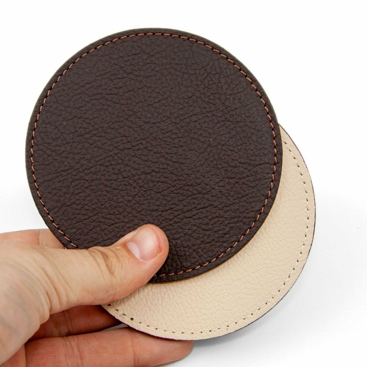 Комплект из двух подстаканников, бирдекелей кожаных, Amrroch Milky Grey by J.Audmorr