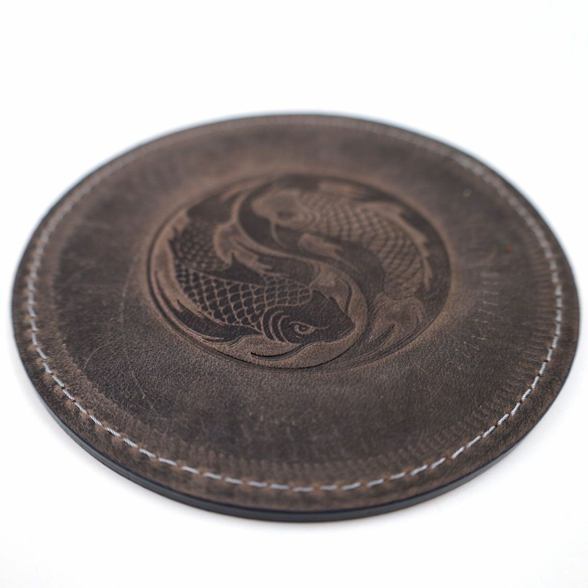 Кожаный подстаканник - бирдекель, подставка под кружку c тиснением "Рыбы", Frongoch Pisces Noir, J.Audmorr
