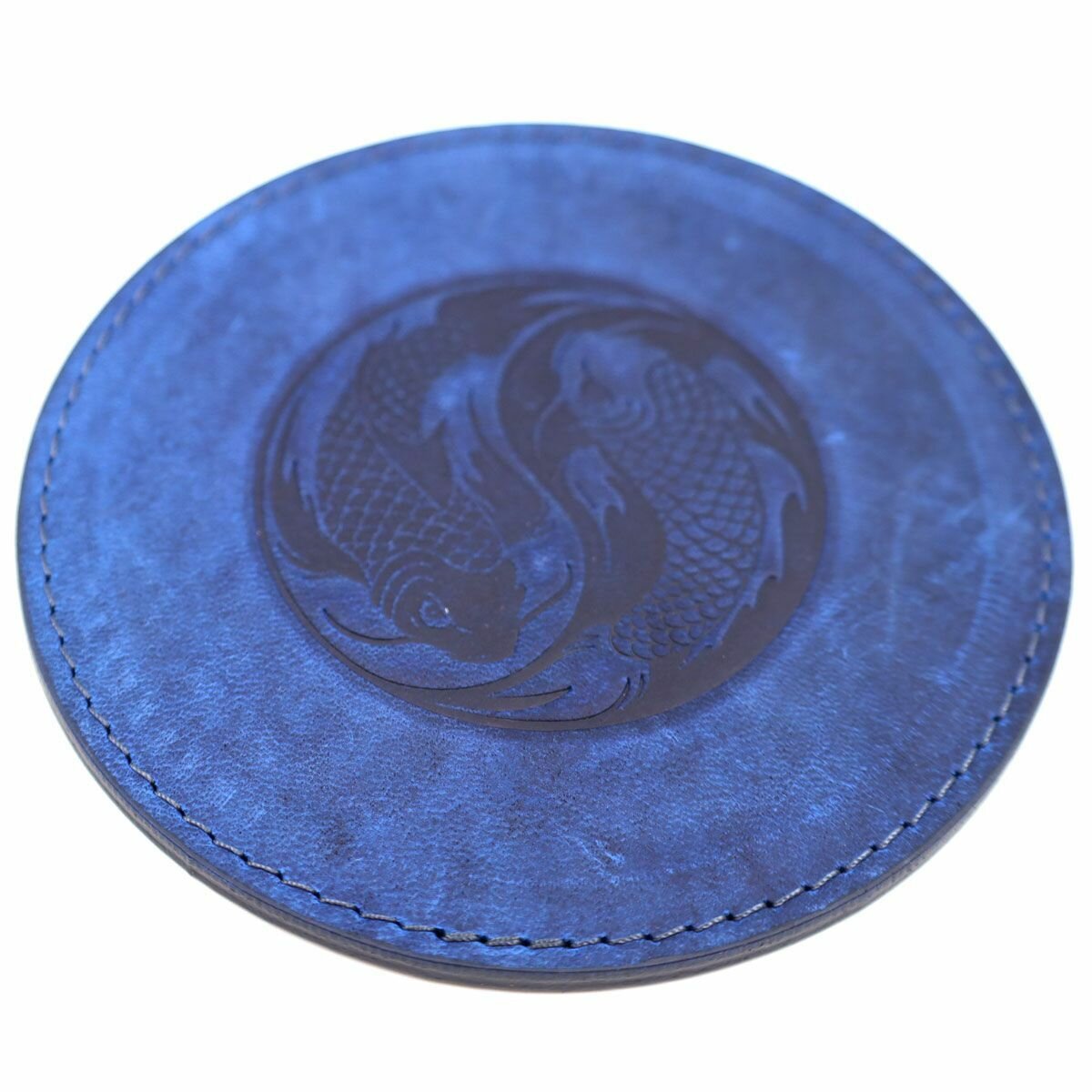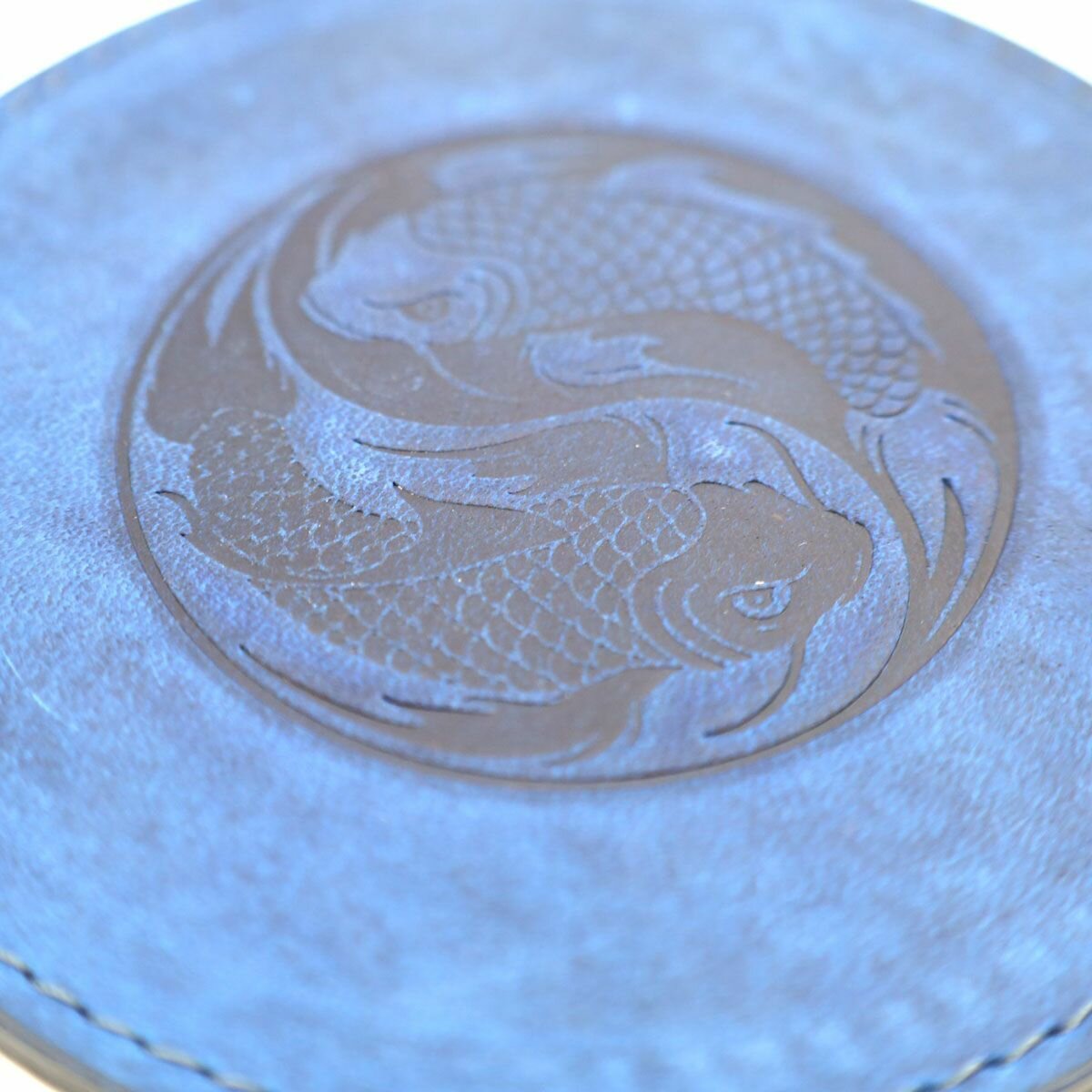 Купить Кожаный подстаканник - бирдекель, подставка под кружку c тиснением "Рыбы", Frongoch Pisces Cobalt, J.Audmorr