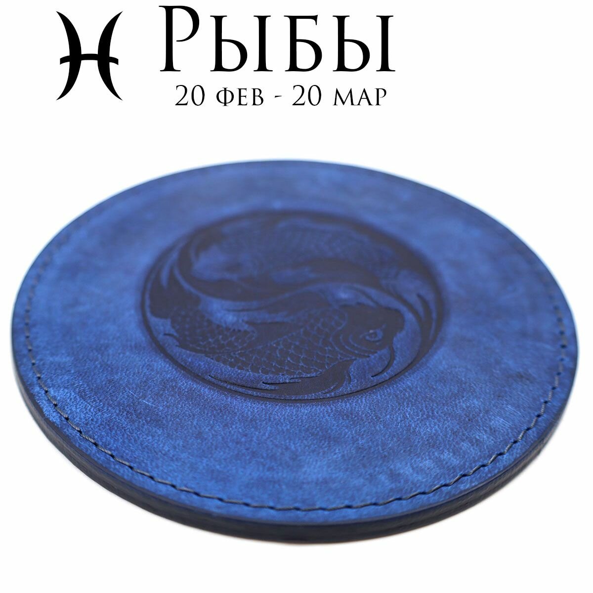 СохранитьКожаный подстаканник - бирдекель, подставка под кружку c тиснением "Рыбы", Frongoch Pisces Cobalt, J.Audmorr интересное: