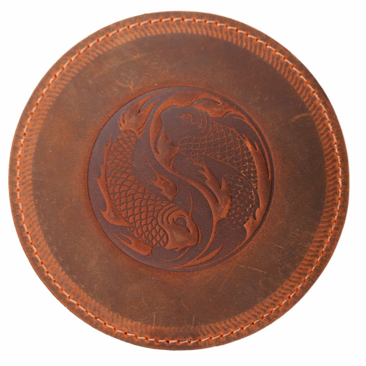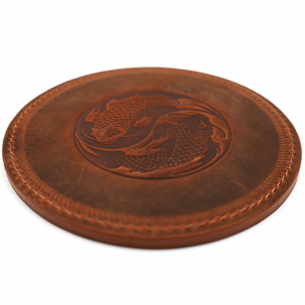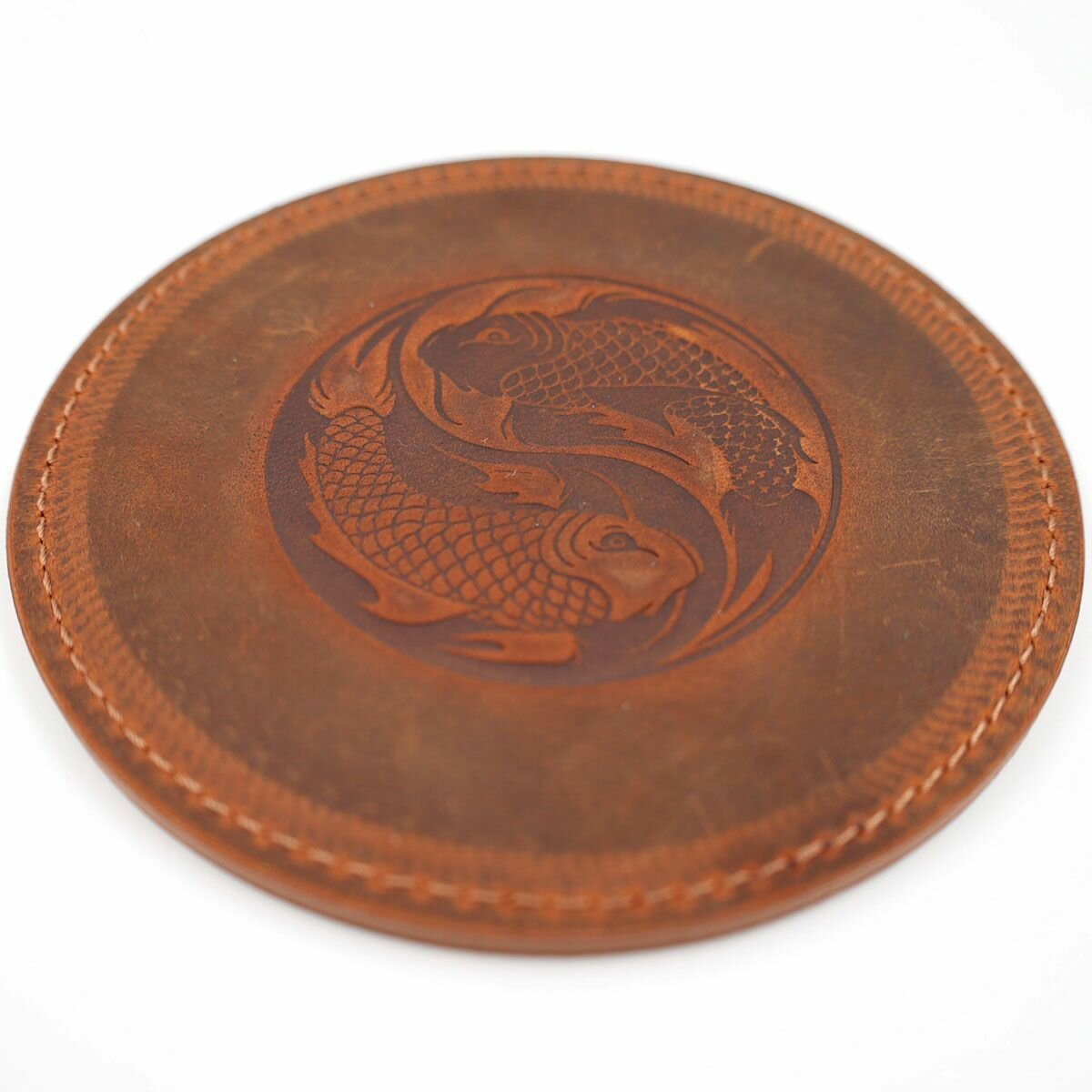 Кожаный подстаканник - бирдекель, подставка под кружку c тиснением "Рыбы", Frongoch Pisces Brownee, J.Audmorr