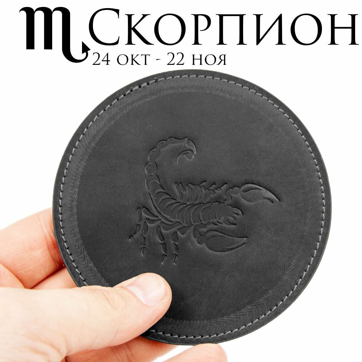 Кожаный подстаканник - бирдекель, подставка под кружку c тиснением "Скорпион", Frongoch Scorpius Bone, J.Audmorr