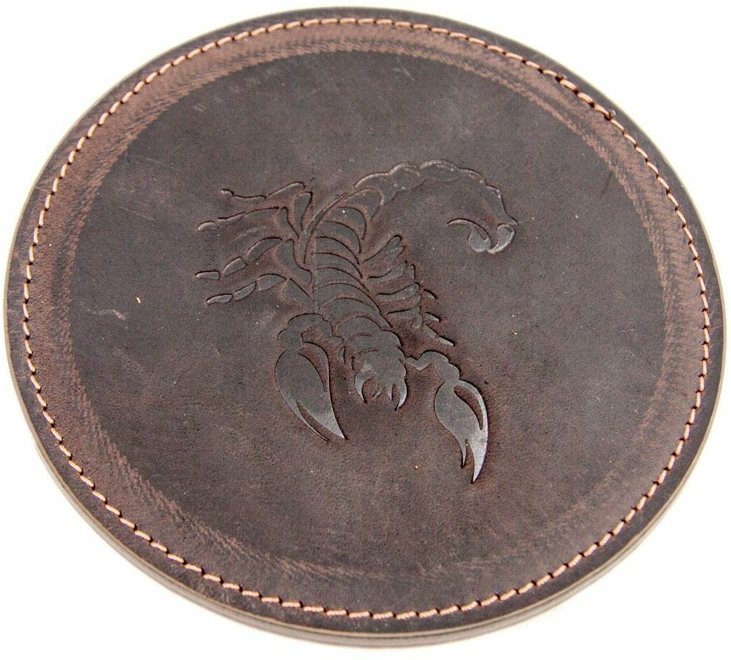 Купить Кожаный подстаканник - бирдекель, подставка под кружку c тиснением "Скорпион", Frongoch Scorpius Brownee, J.Audmorr