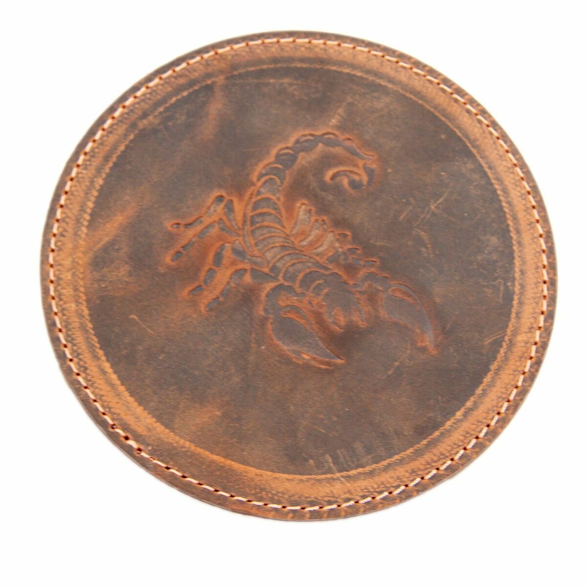 Кожаный подстаканник - бирдекель, подставка под кружку c тиснением "Скорпион", Frongoch Scorpius Brownee, J.Audmorr