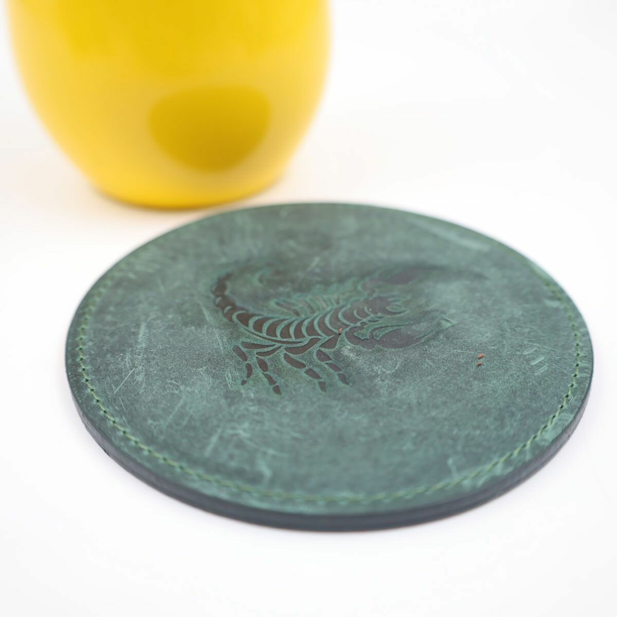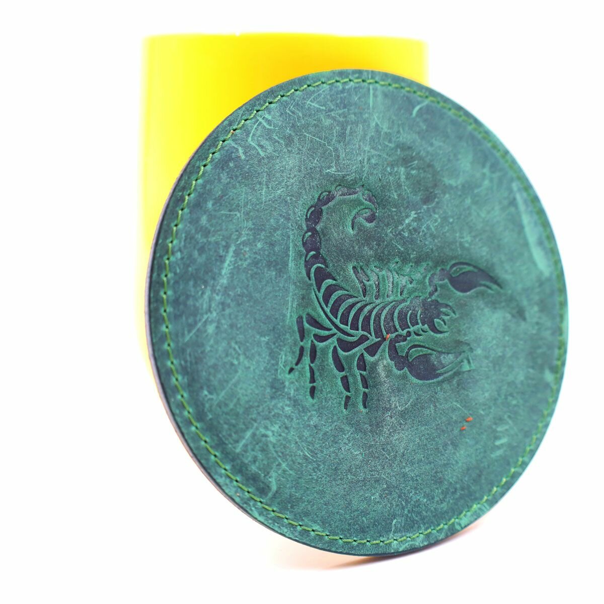 Кожаный подстаканник - бирдекель, подставка под кружку c тиснением "Скорпион", Frongoch Scorpius Bone, J.Audmorr