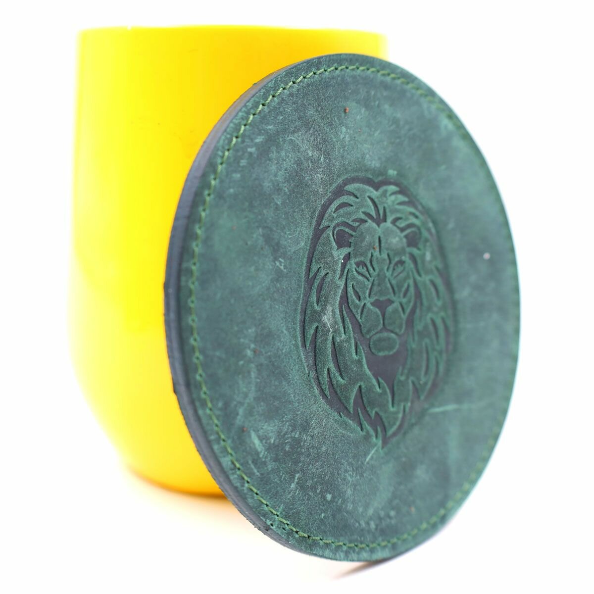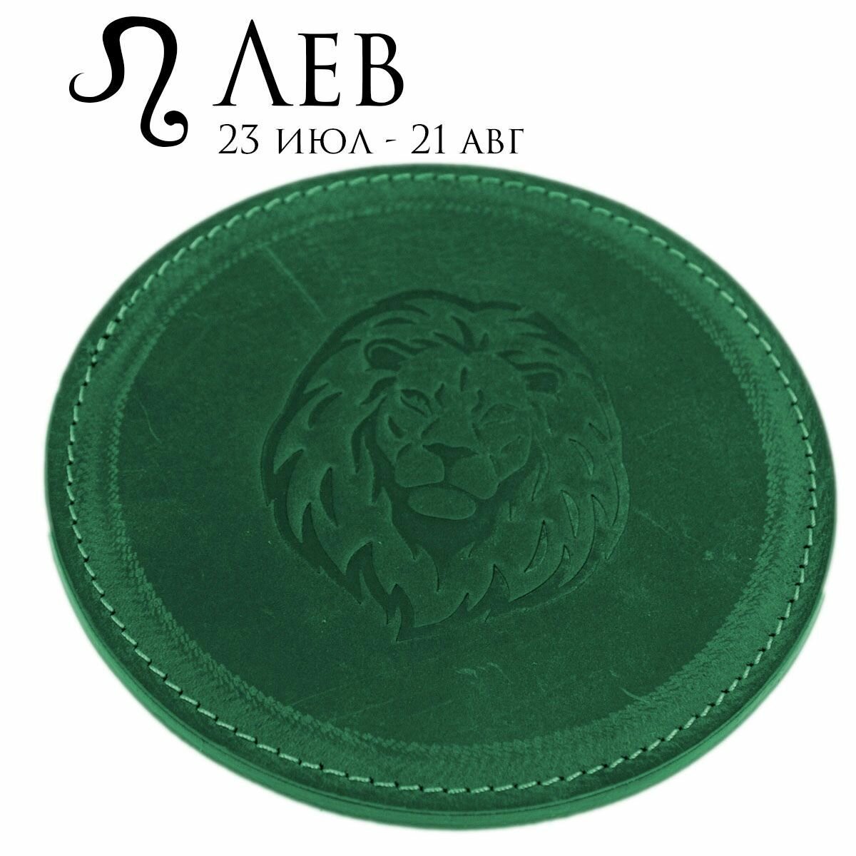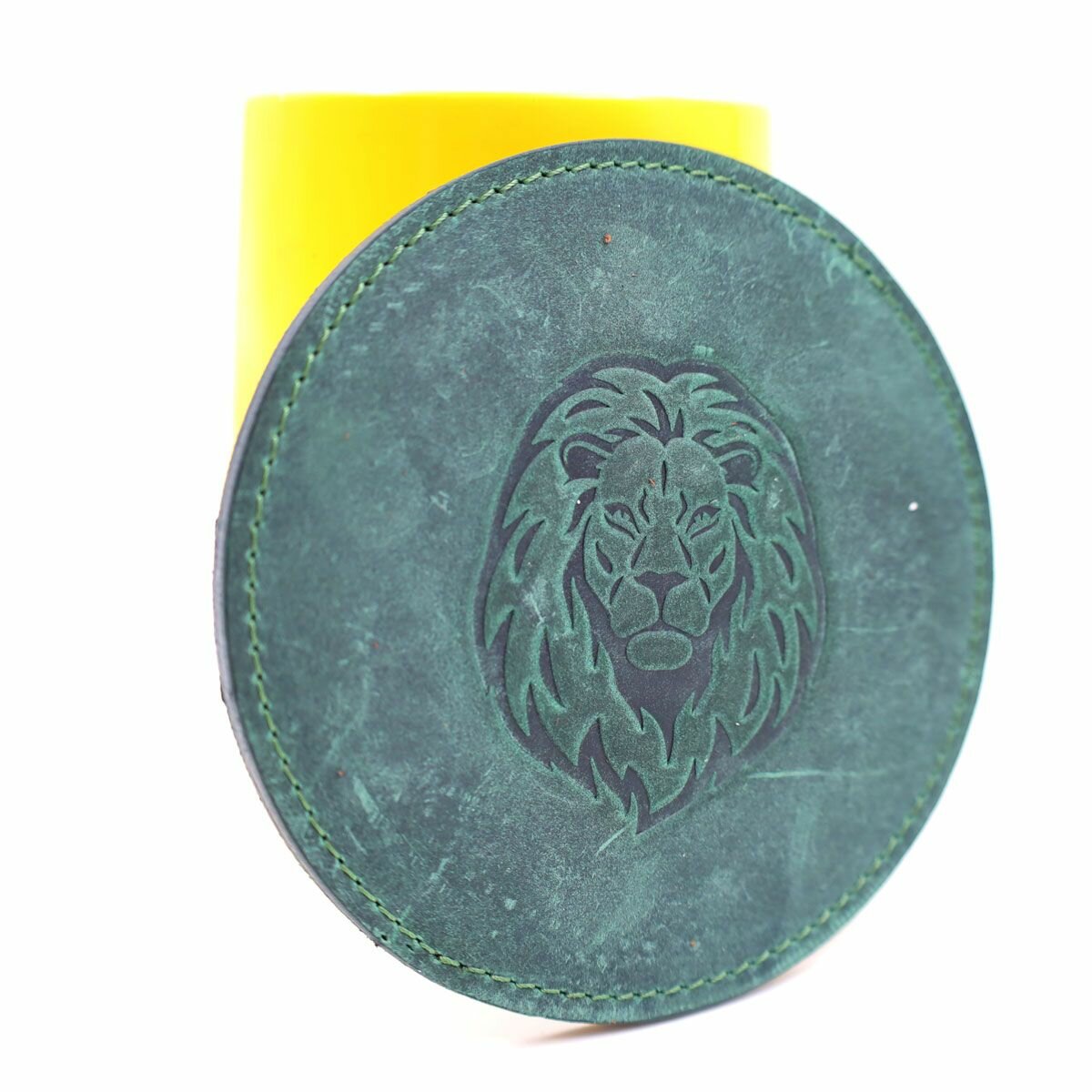 Кожаный подстаканник - бирдекель, подставка под кружку c тиснением "Лев", Frongoch Lion Bone, J.Audmorr