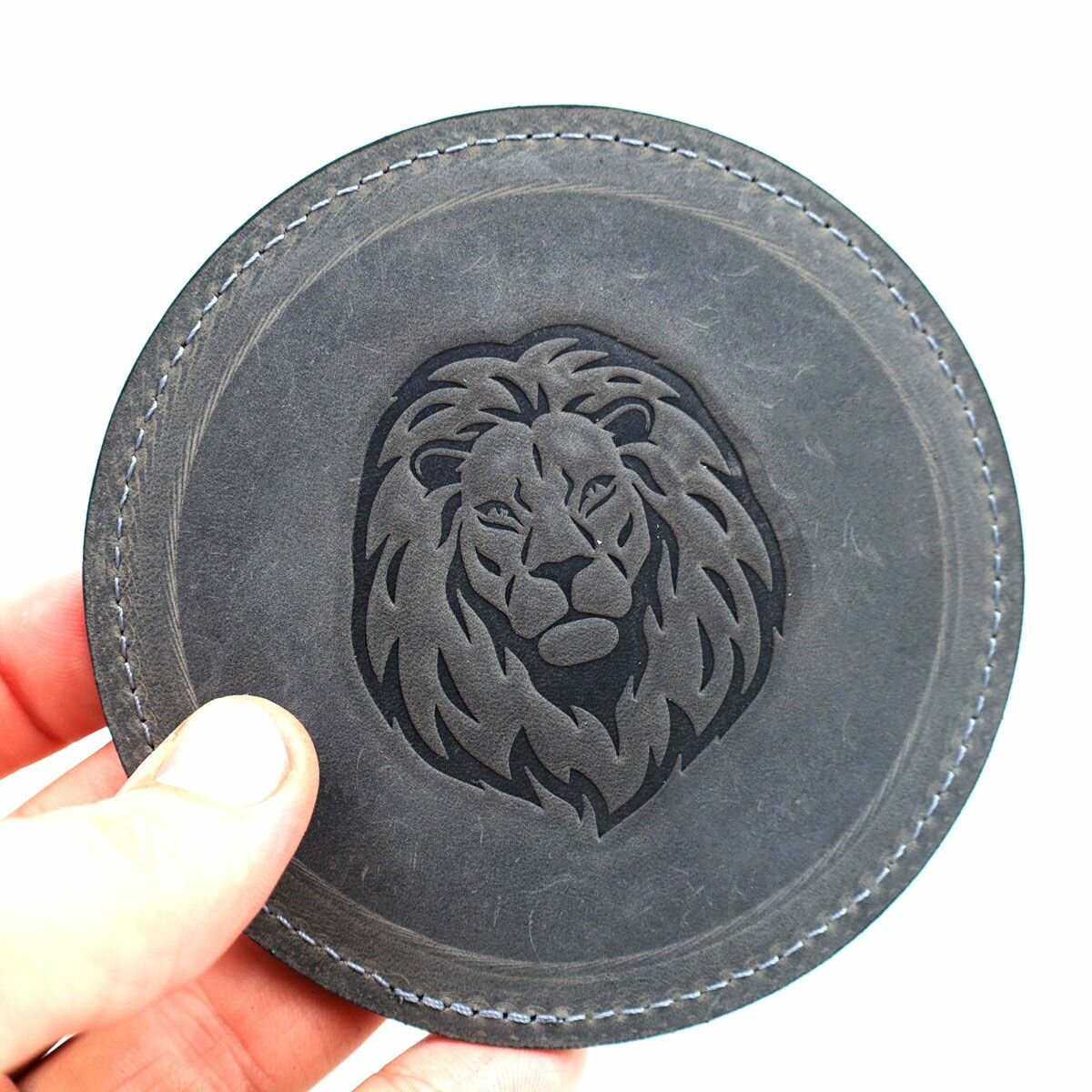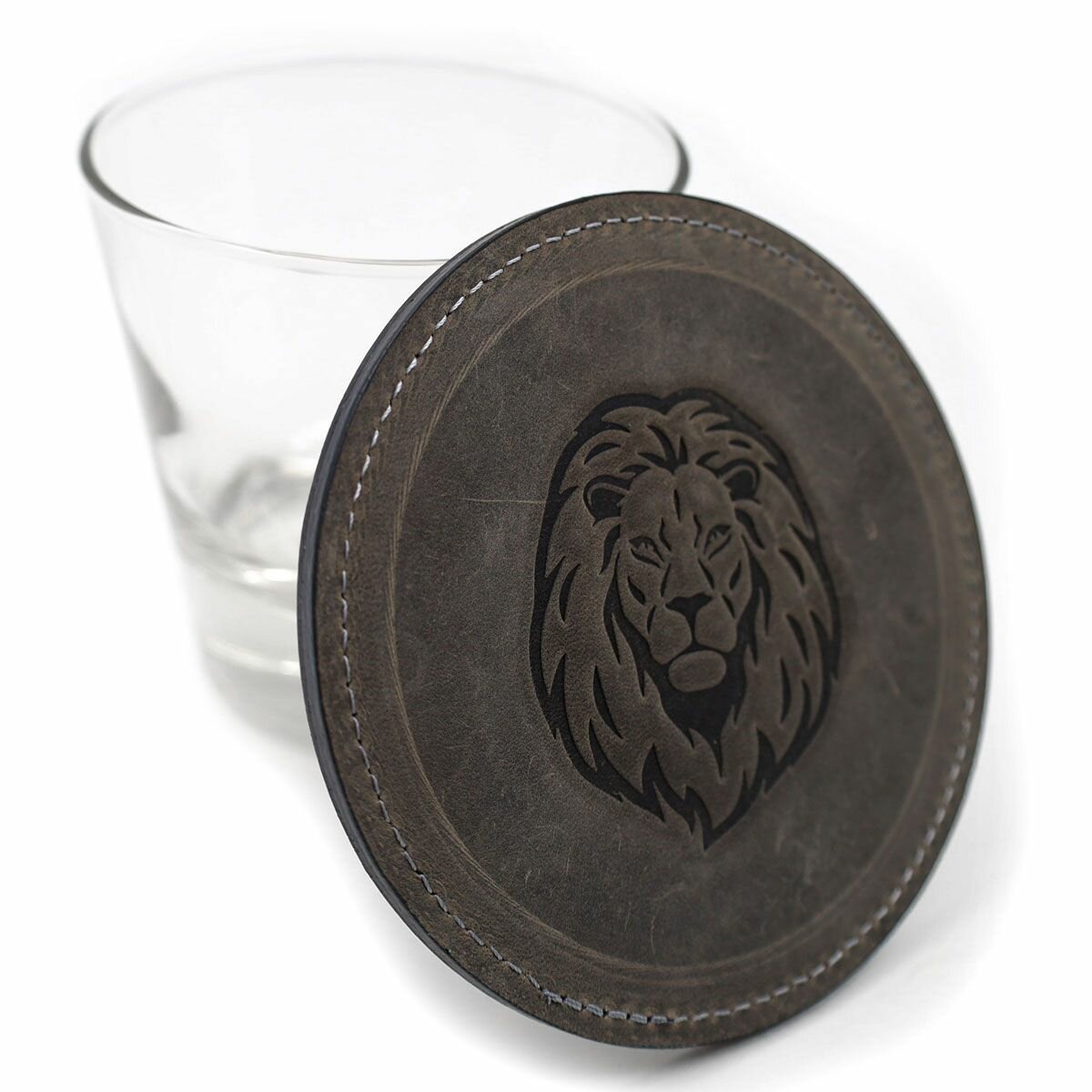 Кожаный подстаканник - бирдекель, подставка под кружку c тиснением "Лев", Frongoch Lion Noir, J.Audmorr