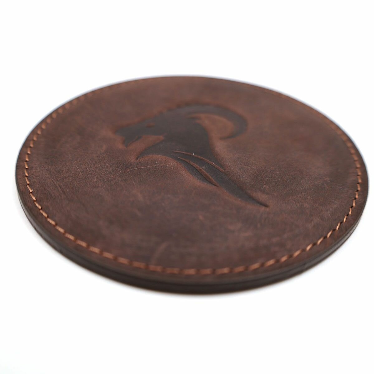 Кожаный подстаканник - бирдекель, подставка под кружку c тиснением "Козерог", Frongoch Capricorn Bone, J.Audmorr