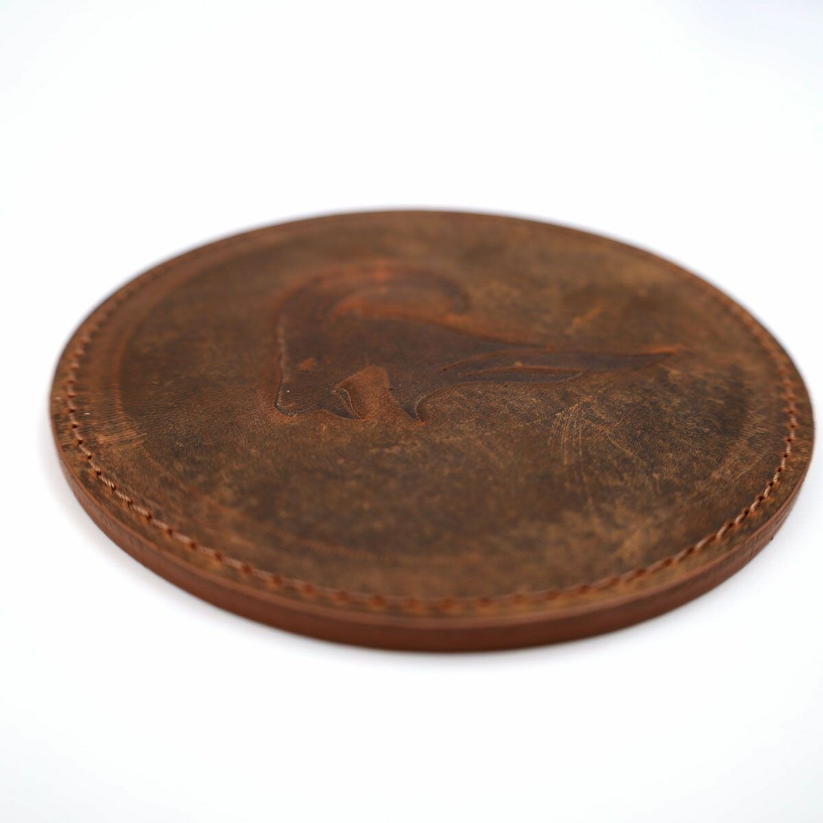 Кожаный подстаканник - бирдекель, подставка под кружку c тиснением "Козерог", Frongoch Capricorn Bone, J.Audmorr