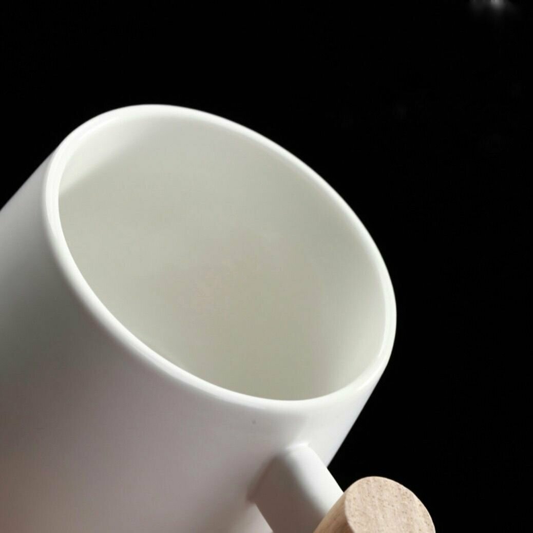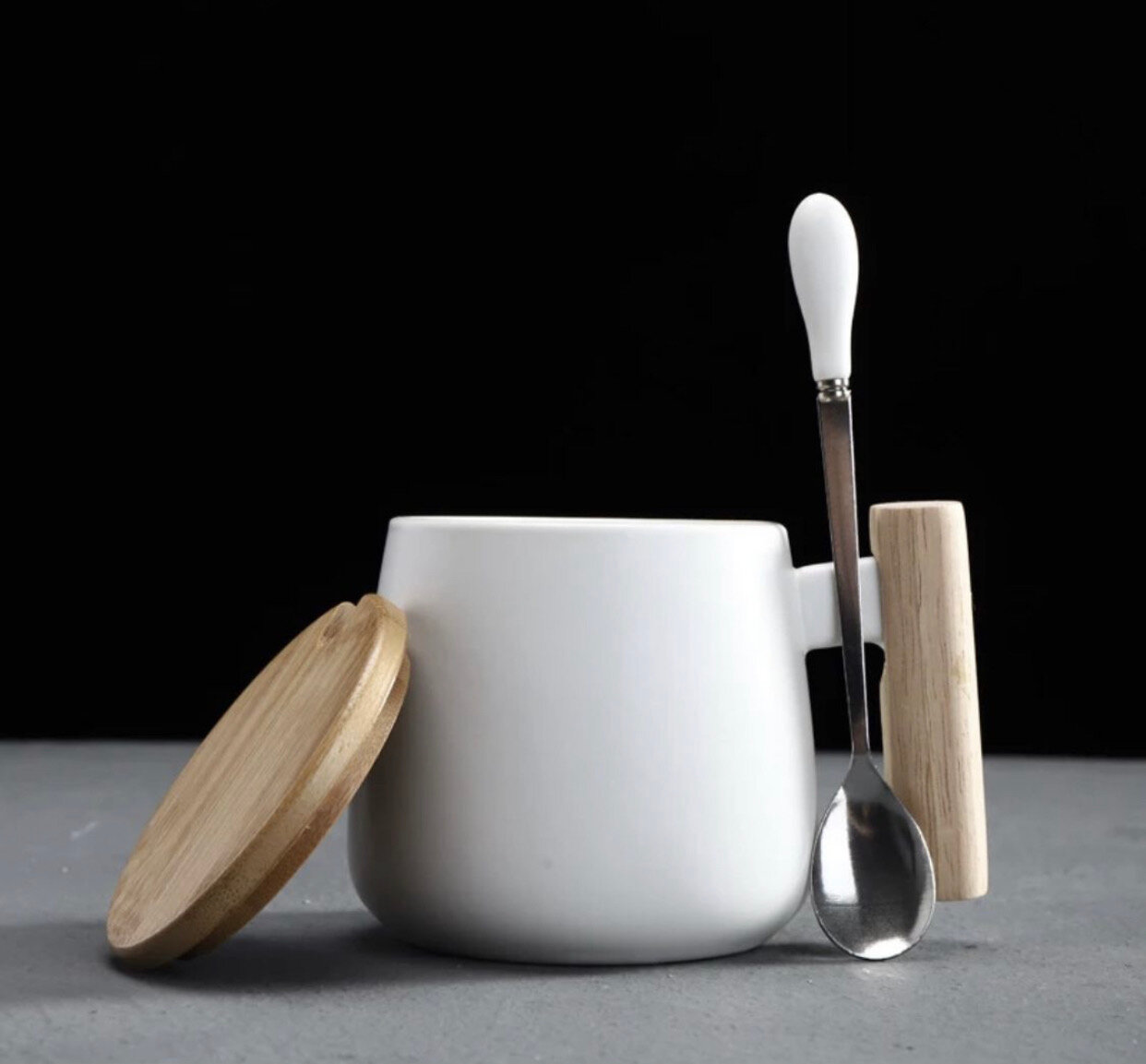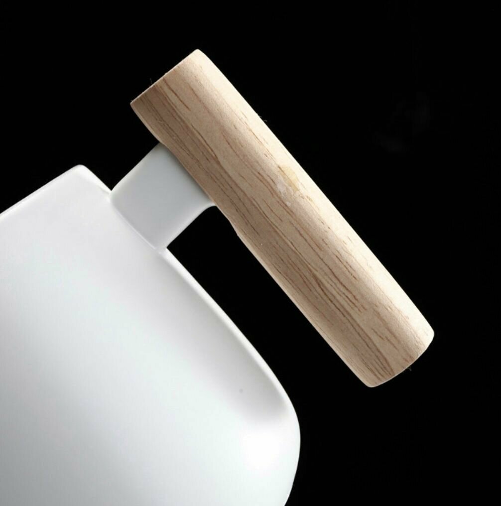 Сахарница с ложкой белая (450мл) керамическая деревянная (бамбуковая) ручка и крышка, металлическая ложка