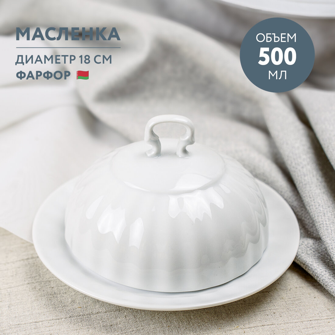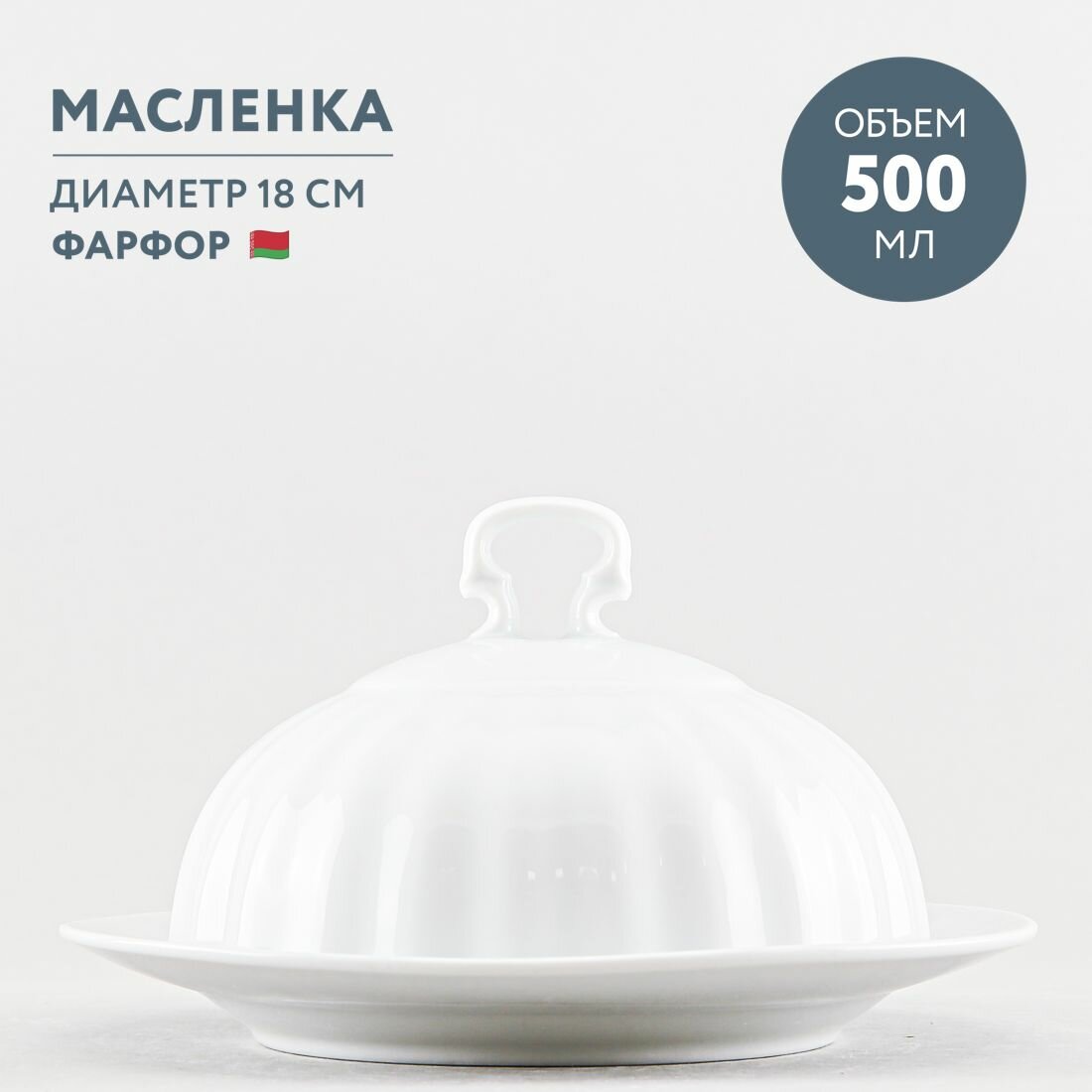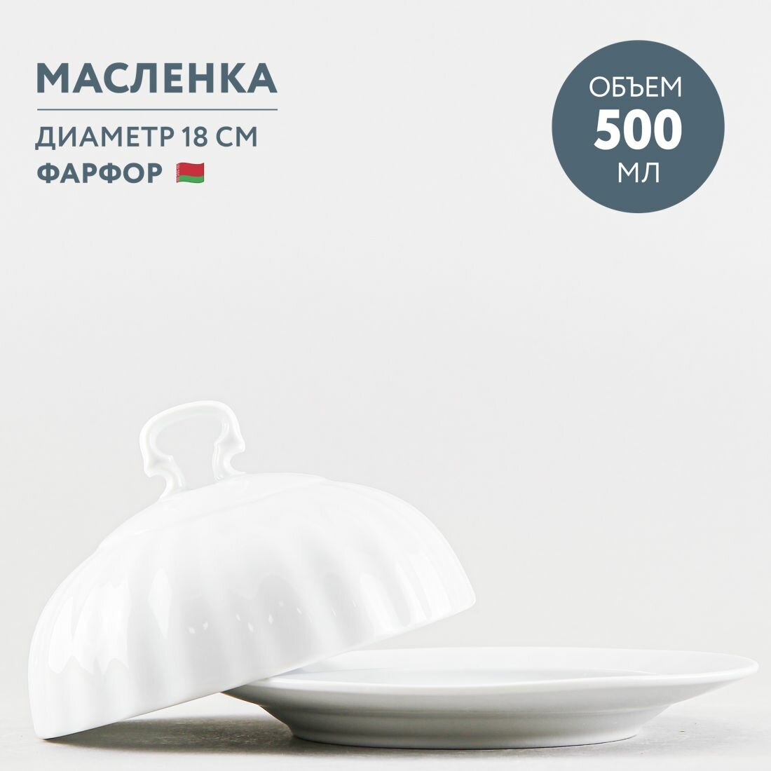Масленка для сливочного масла круглая Добрушский фарфор Белая интересное: