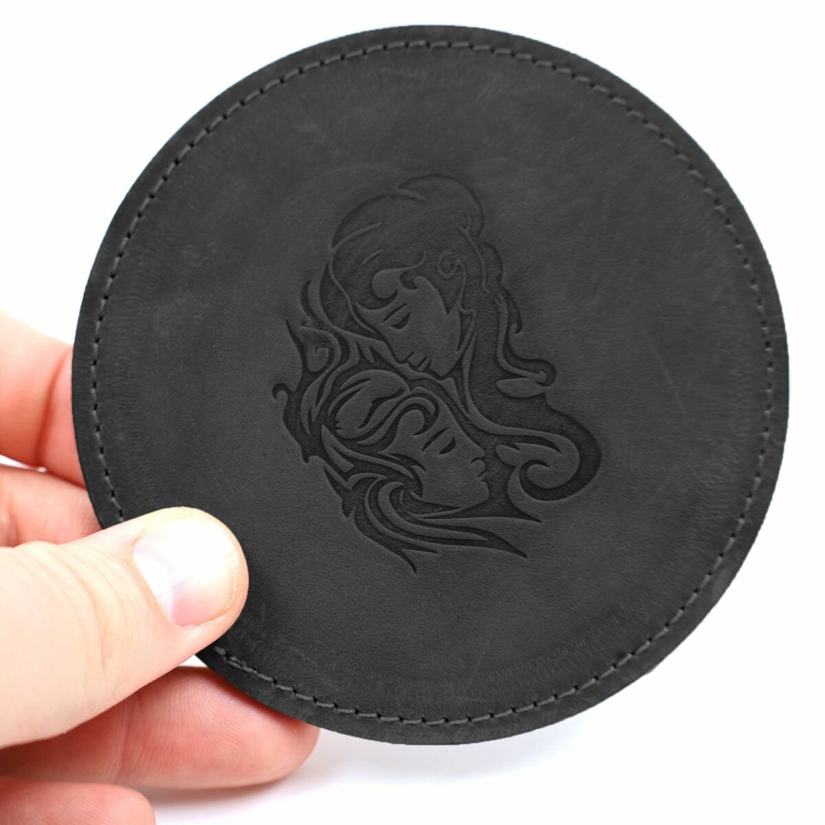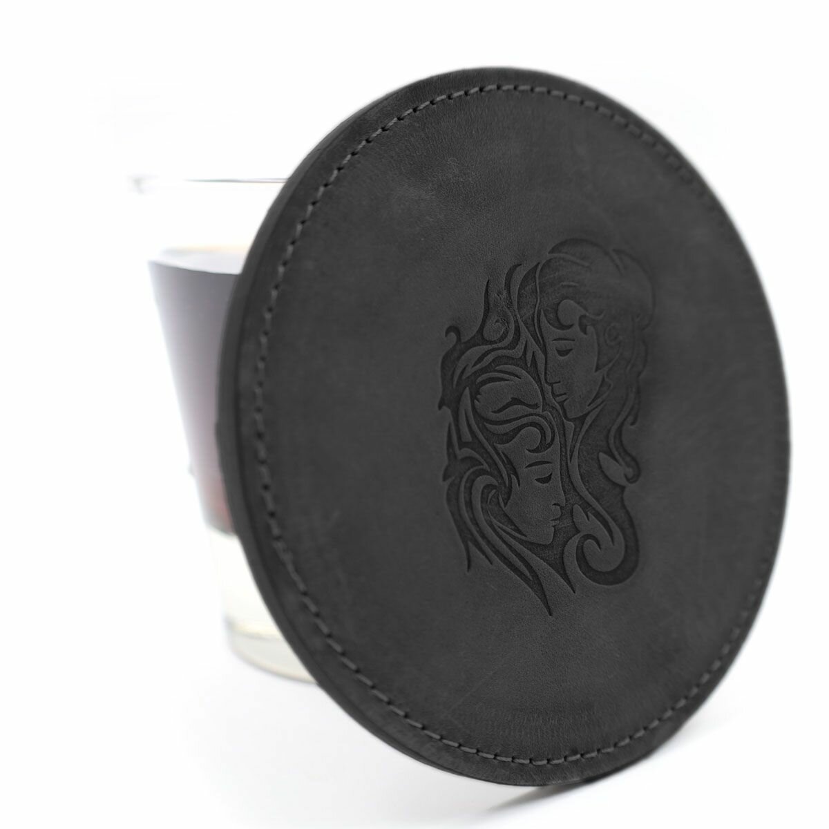 Купить Кожаный подстаканник - бирдекель, подставка под кружку c тиснением "Близнецы", Frongoch Gemini Noir, J.Audmorr