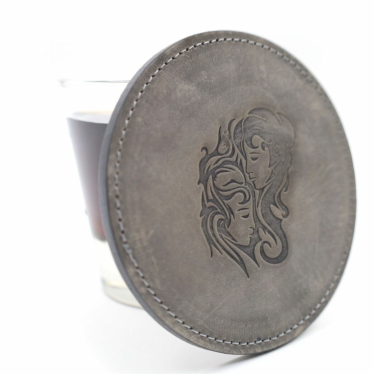 Купить Кожаный подстаканник - бирдекель, подставка под кружку c тиснением "Близнецы", Frongoch Gemini Bone, J.Audmorr