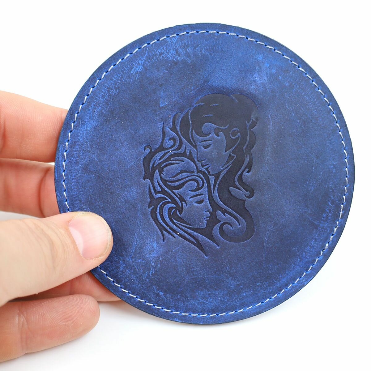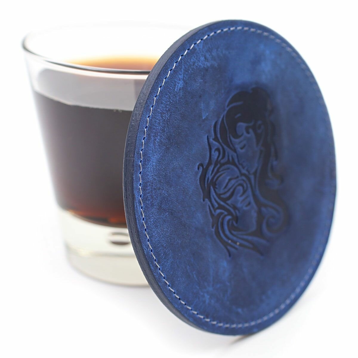 Купить Кожаный подстаканник - бирдекель, подставка под кружку c тиснением "Близнецы", Frongoch Gemini Cobalt, J.Audmorr