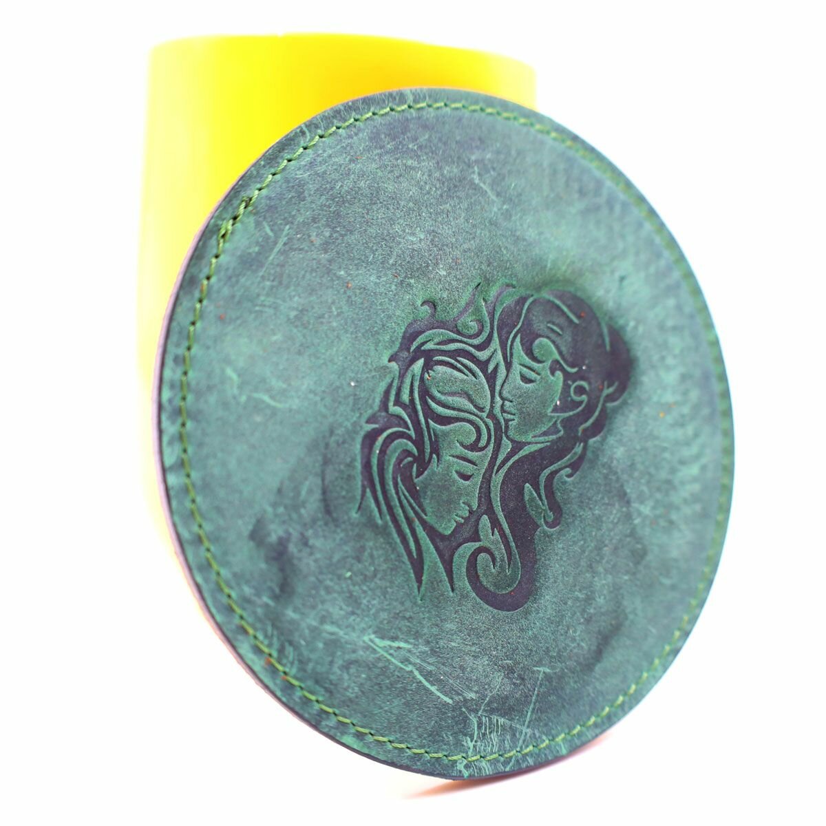 Кожаный подстаканник - бирдекель, подставка под кружку c тиснением "Близнецы", Frongoch Gemini Brownee, J.Audmorr