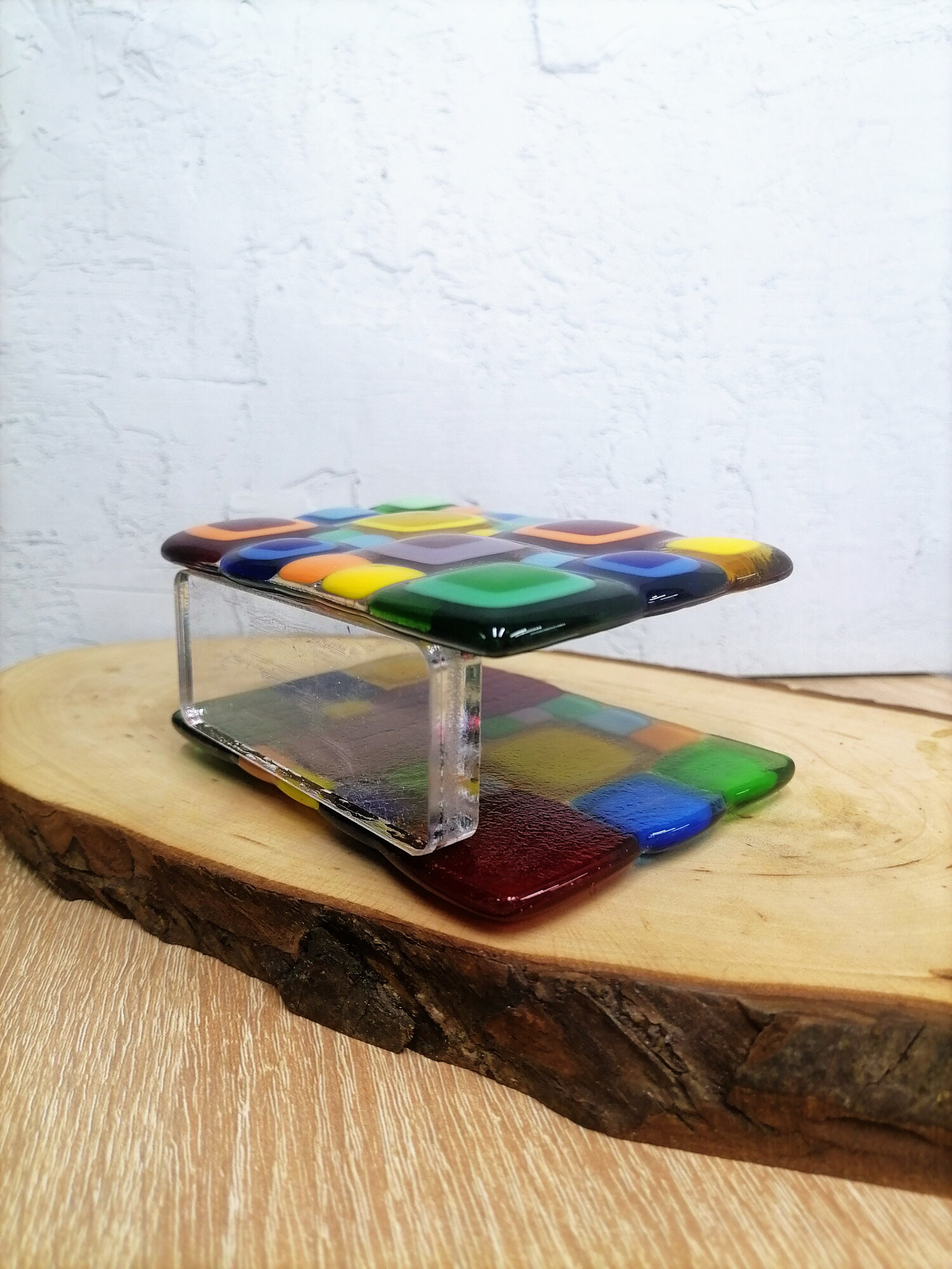 Салфетница Стекло и Руки "Игра цвета", фьюзинг, стекло, ручная работа