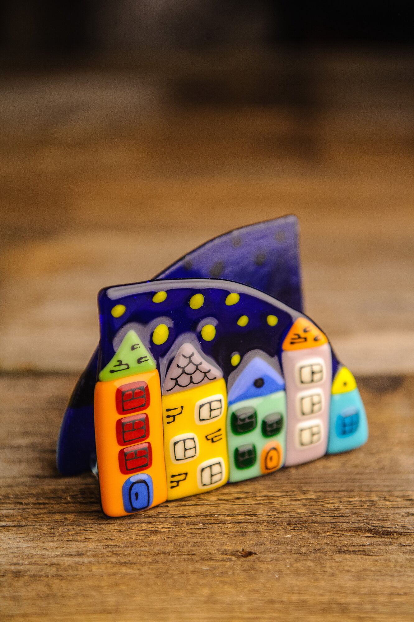 Купить Салфетница Стекло и Руки "Домики", фьюзинг, стекло, ручная работа