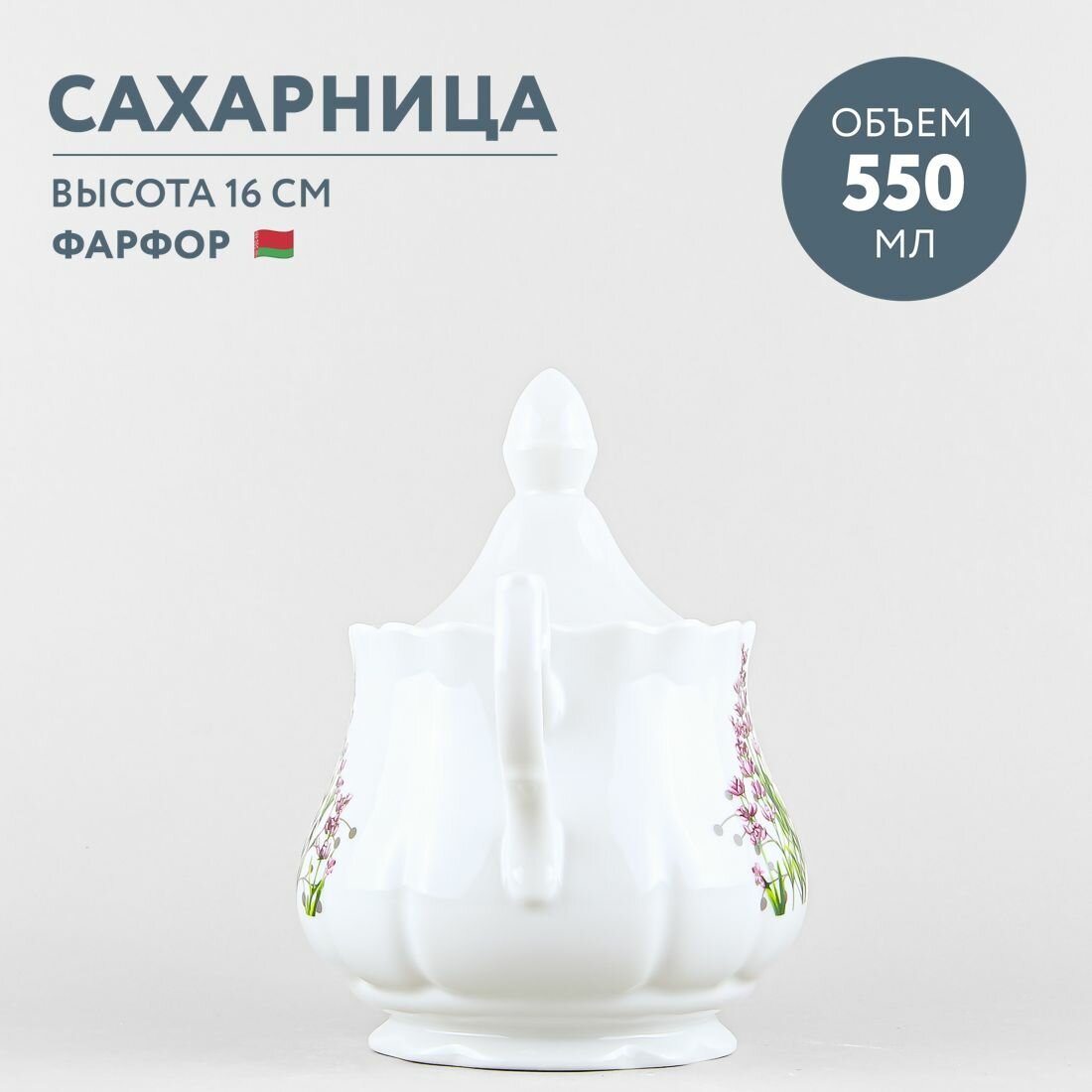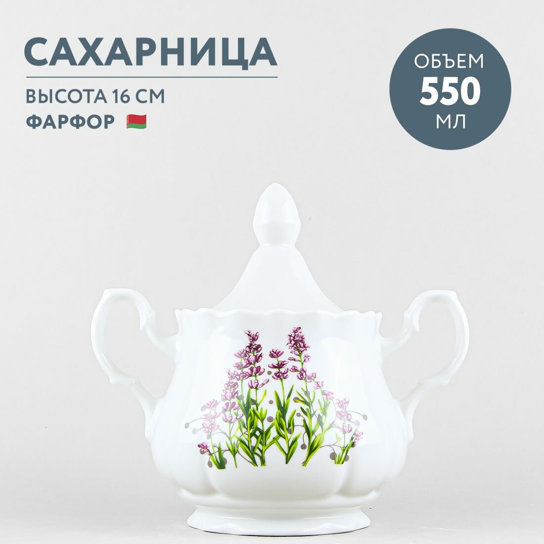 Сахарница фарфоровая с крышкой 550 мл Добрушский фарфор Лаванда интересное: