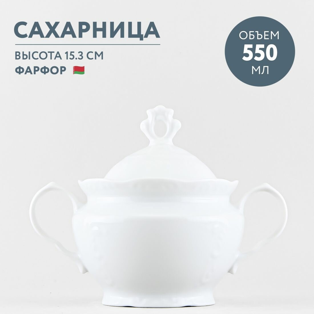 Сахарница фарфоровая с крышкой 550 мл Добрушский фарфор Белый интересное: