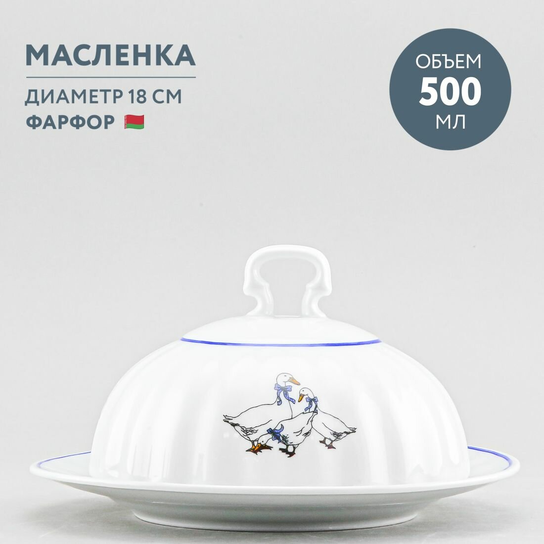 Масленка для сливочного масла круглая Добрушский фарфор Гуси интересное: