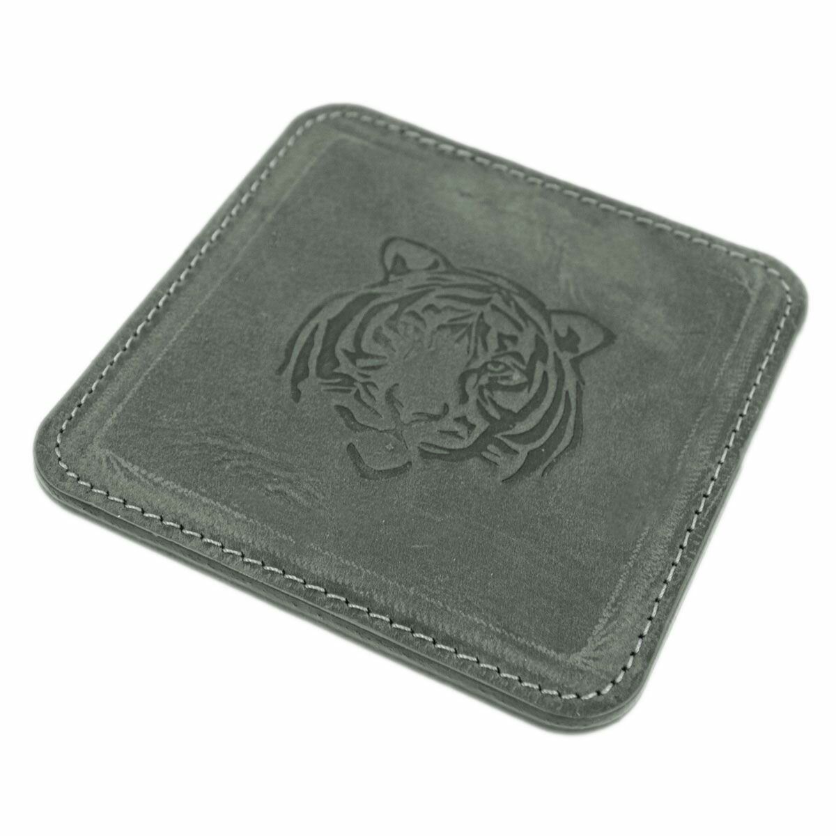 Кожаный подстаканник - бирдекель, подставка под кружку c тиснением "Тигр", Frongoch Tiger Noir, J.Audmorr
