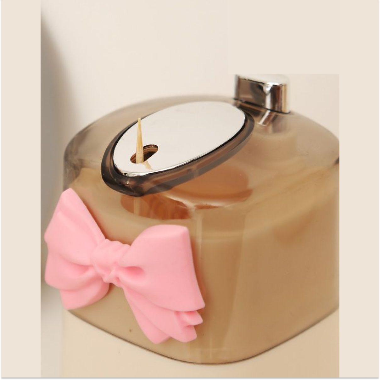 Купить Держатель для зубочисток автоматический "Бантик", бежевый, пластиковый, с крышкой