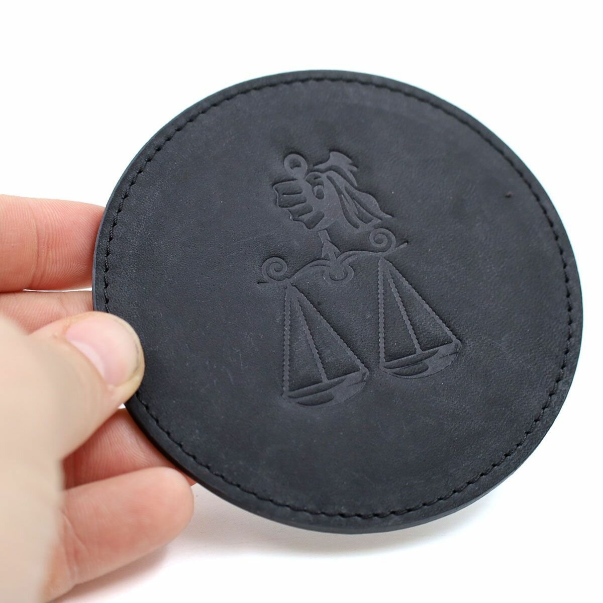 Купить Кожаный подстаканник - бирдекель, подставка под кружку c тиснением "весы", Frongoch Libra Noir, J.Audmorr