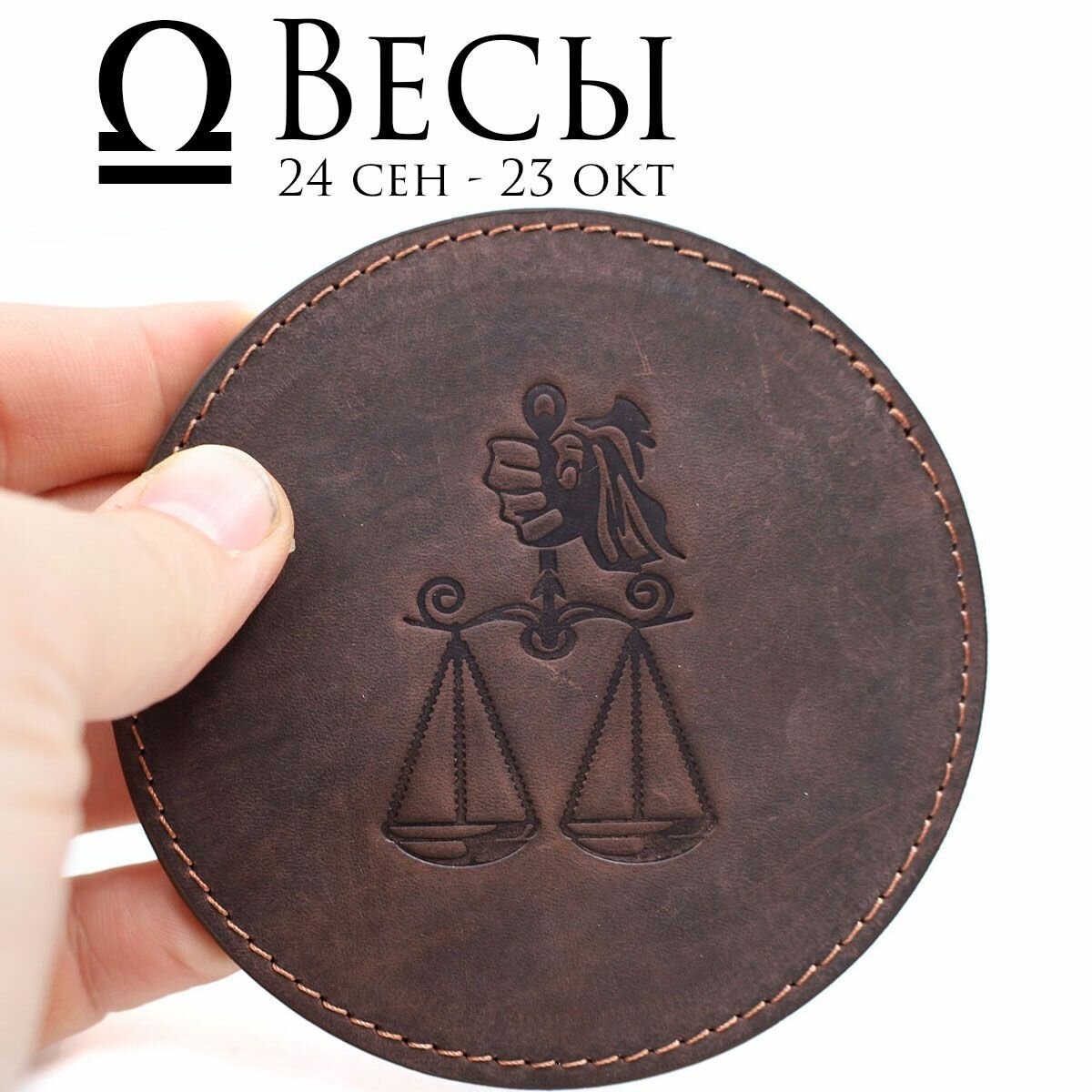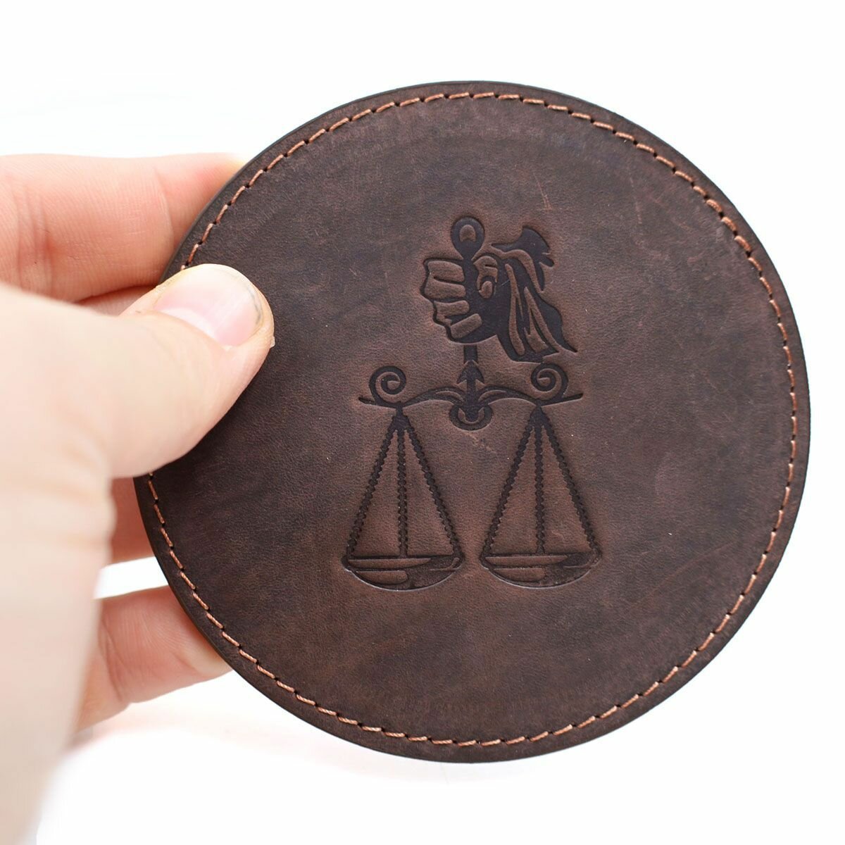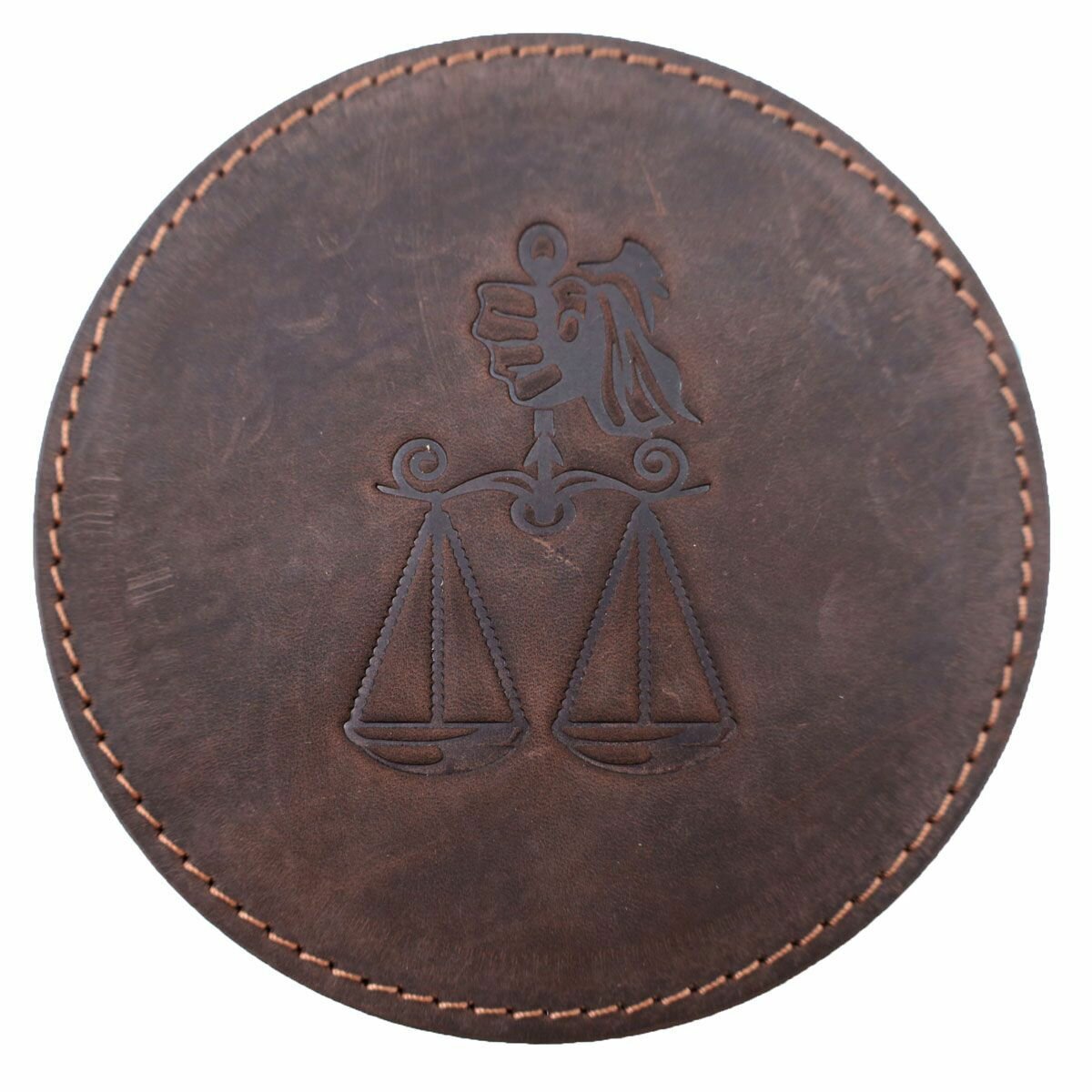 Кожаный подстаканник - бирдекель, подставка под кружку c тиснением "весы", Frongoch Libra Bone, J.Audmorr