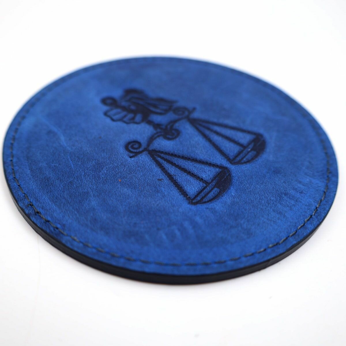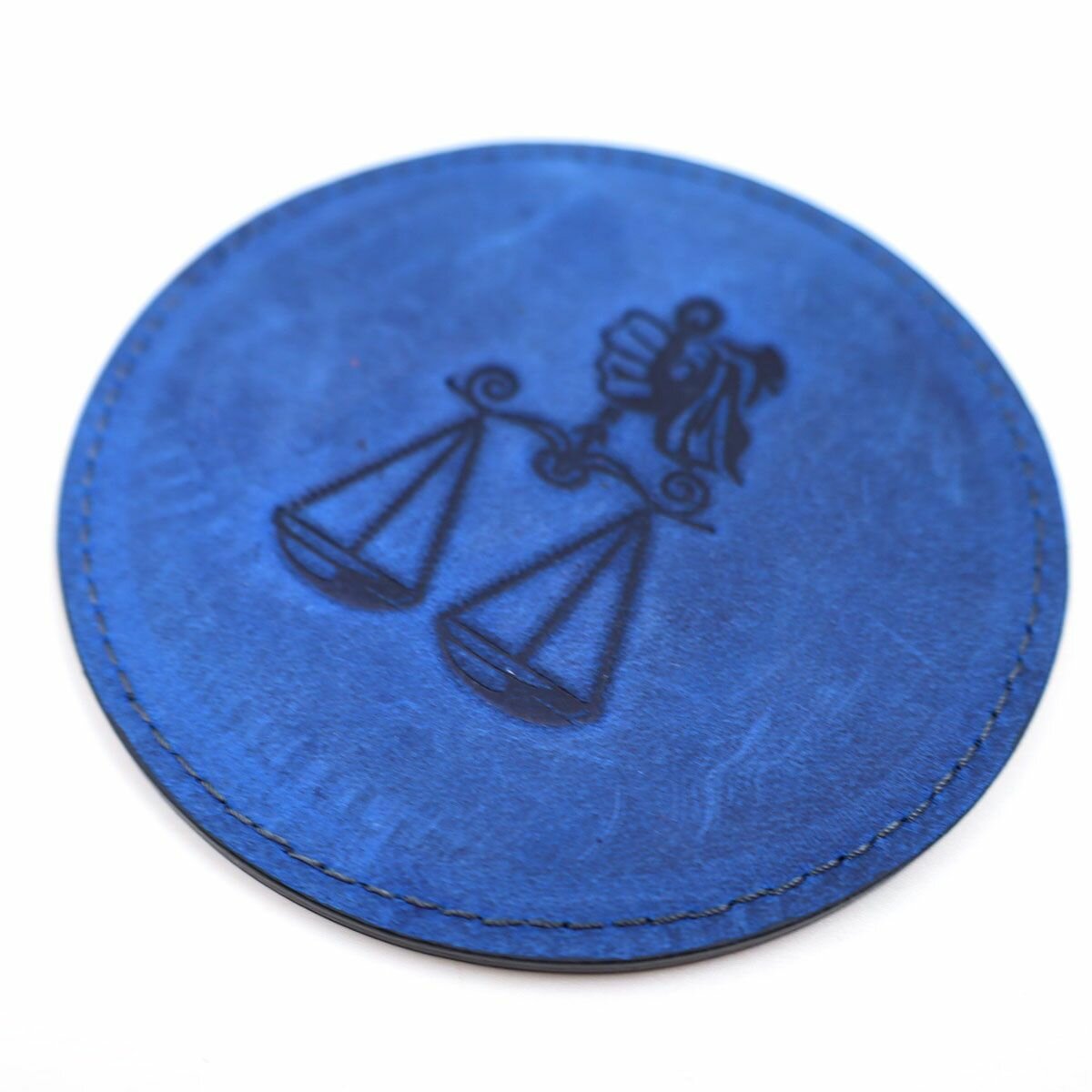 Купить Кожаный подстаканник - бирдекель, подставка под кружку c тиснением "весы", Frongoch Libra Cobalt, J.Audmorr