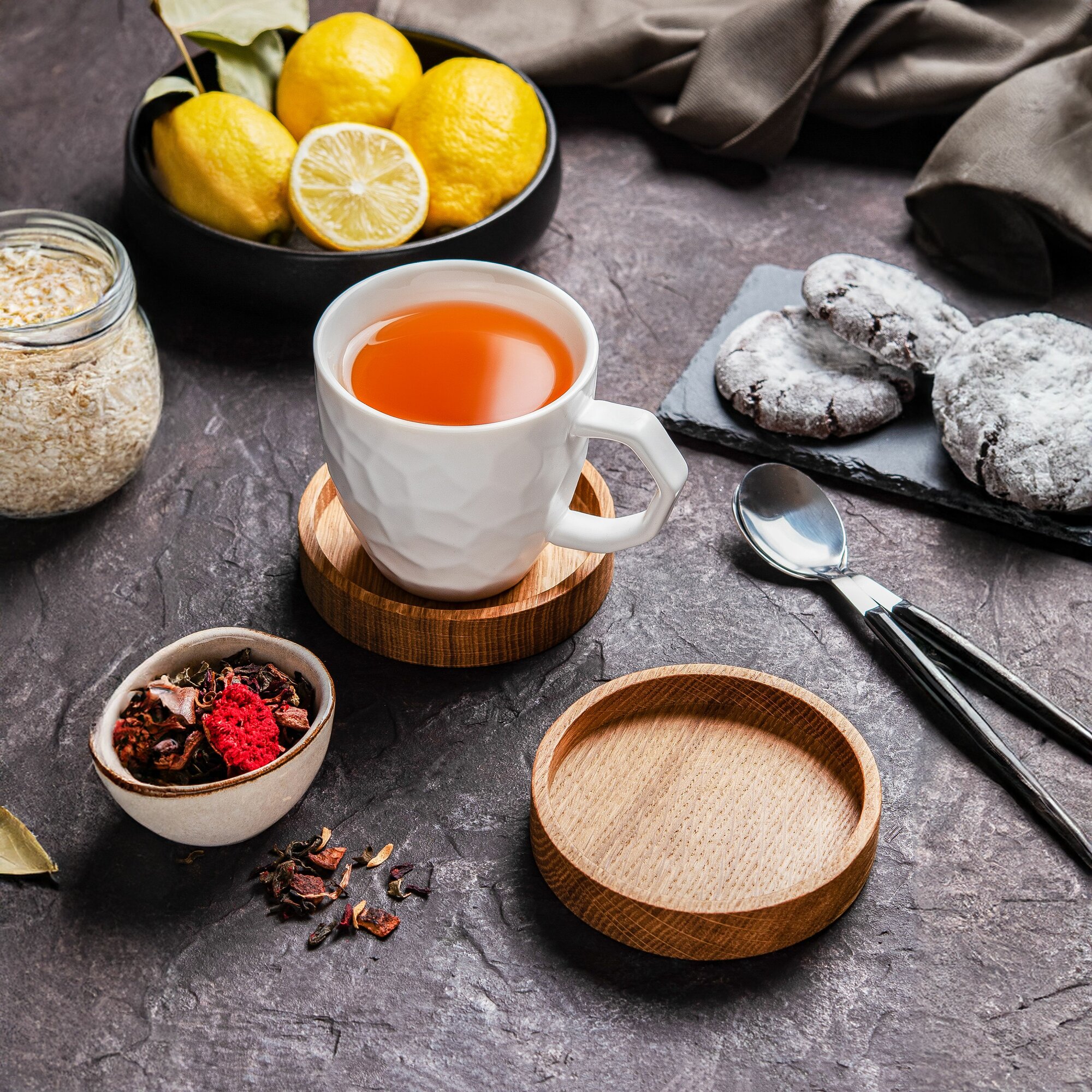 Деревянная подставка/крышка из дуба под чашку, кружку, стакан - 2шт