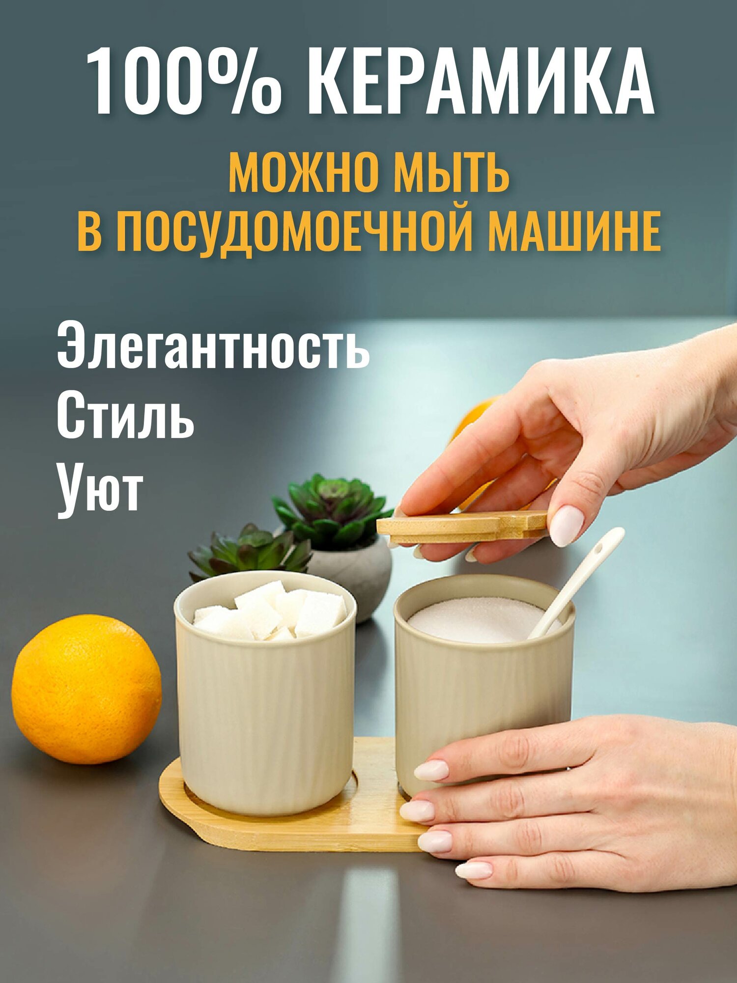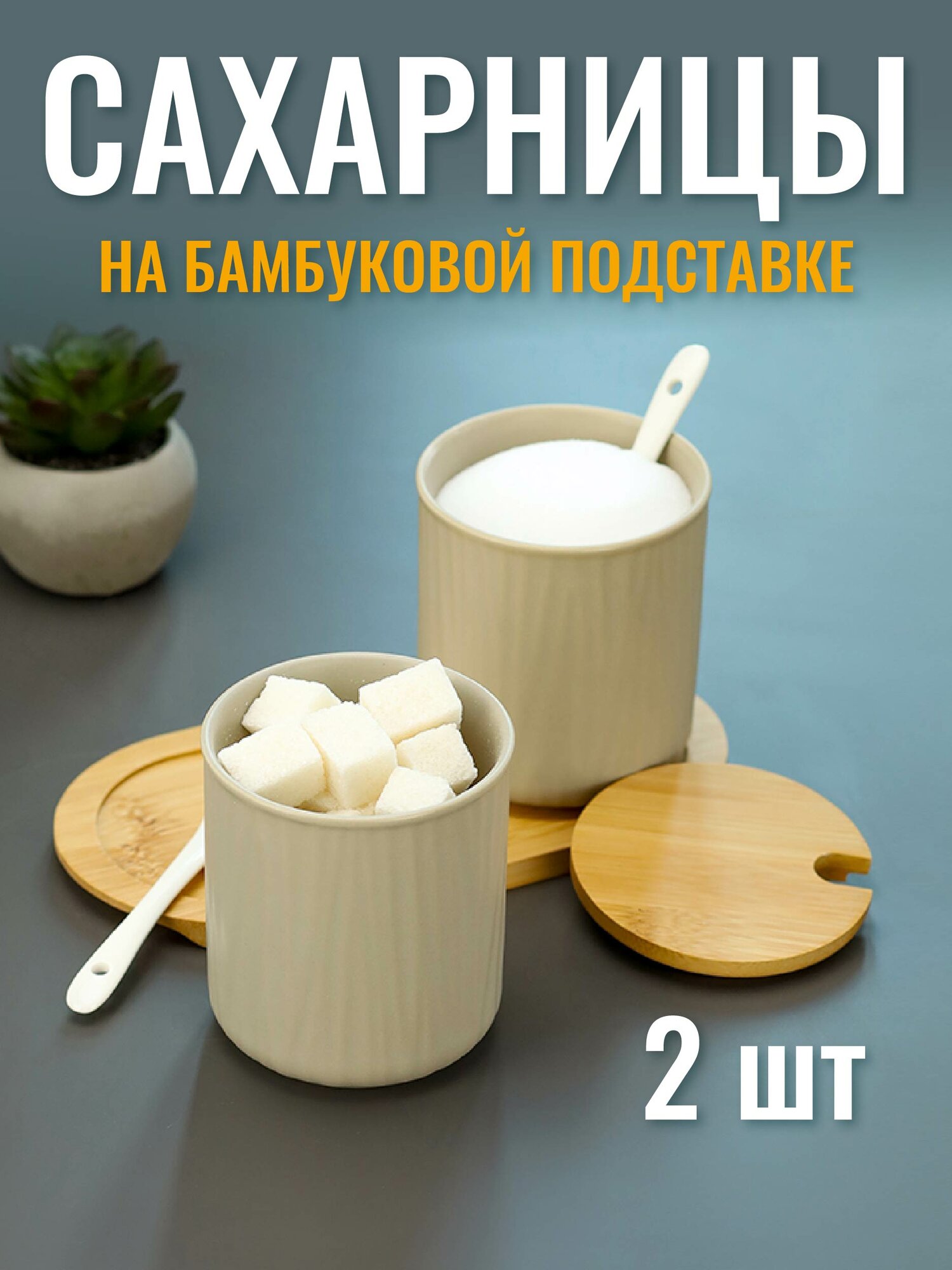 Купить Подарочный набор "сахарницы на бамбуковой подставке" керамические, 2 штуки
