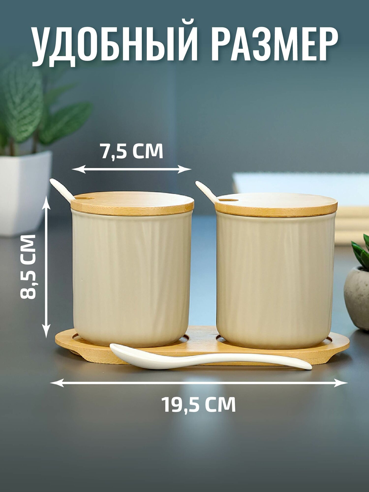 Подарочный набор "сахарницы на бамбуковой подставке" 2 штуки, белый, размер 19.5х7.5х8.5 см
