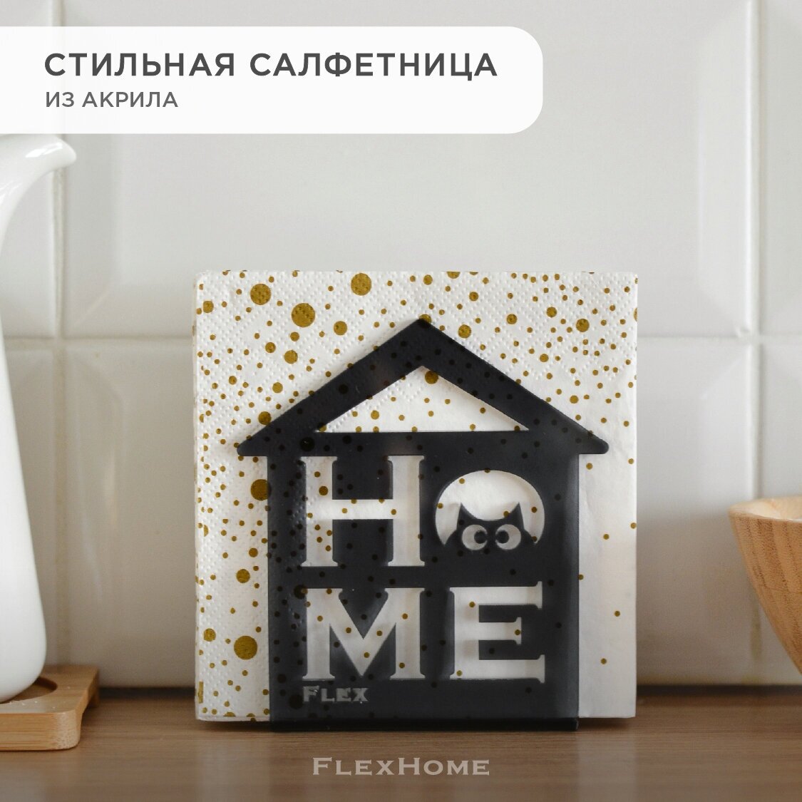 Салфетница FlexHome, акрил, чёрная, 11x10x4 см интересное:
