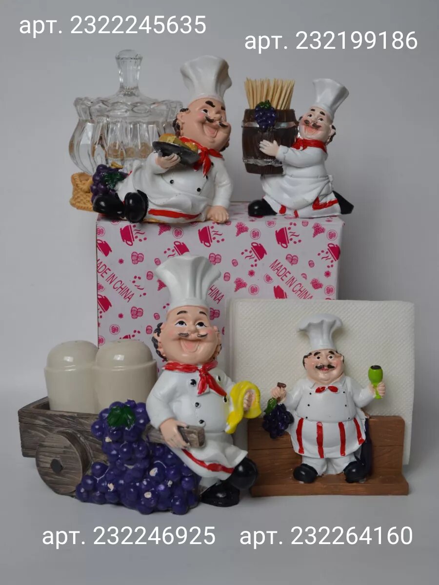 Салфетница + солонка и перечница + подставка под зубочистки (стилизованный набор)