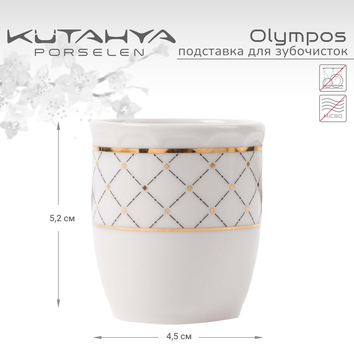 Подставка для зубочисток Kutahya Olympos-12583, фарфоровая, белая/золотистая интересное:
