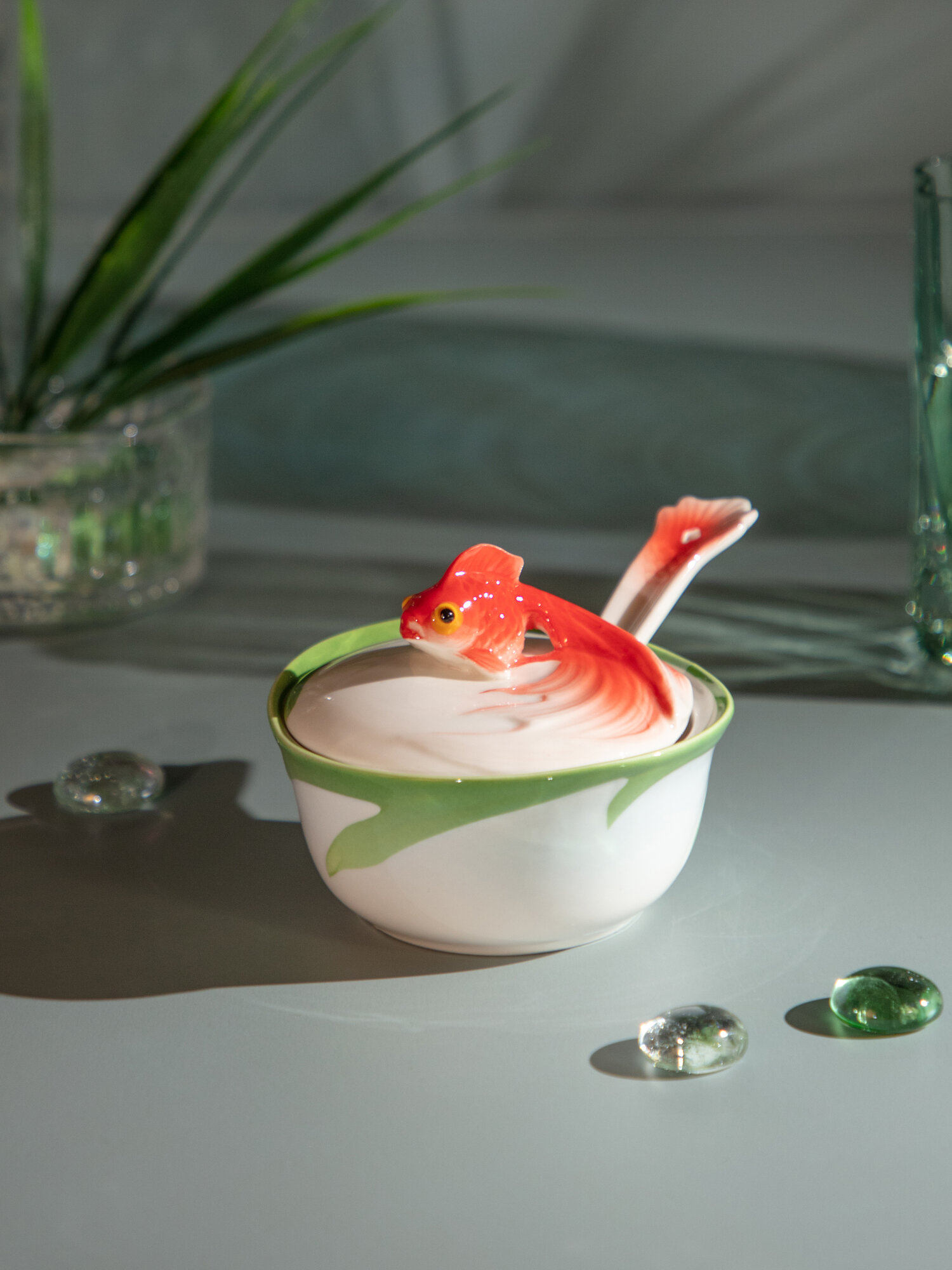 Купить Икорница Lefard "Золотая рыбка", с крышкой, и ложкой, 10х10х9 см, фарфор