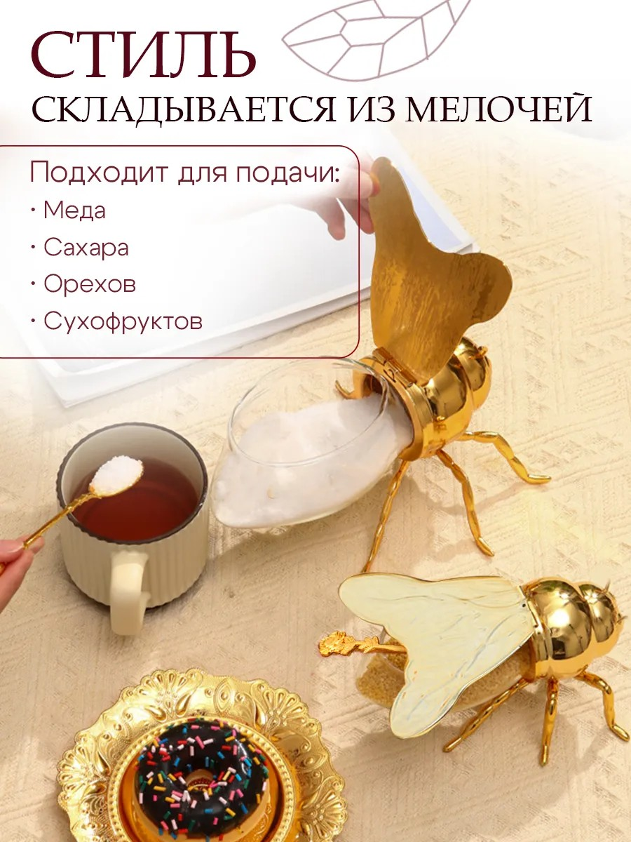 Сахарница пчела, золотая, 100 мл, солонка, с крышкой и ложкой интересное: