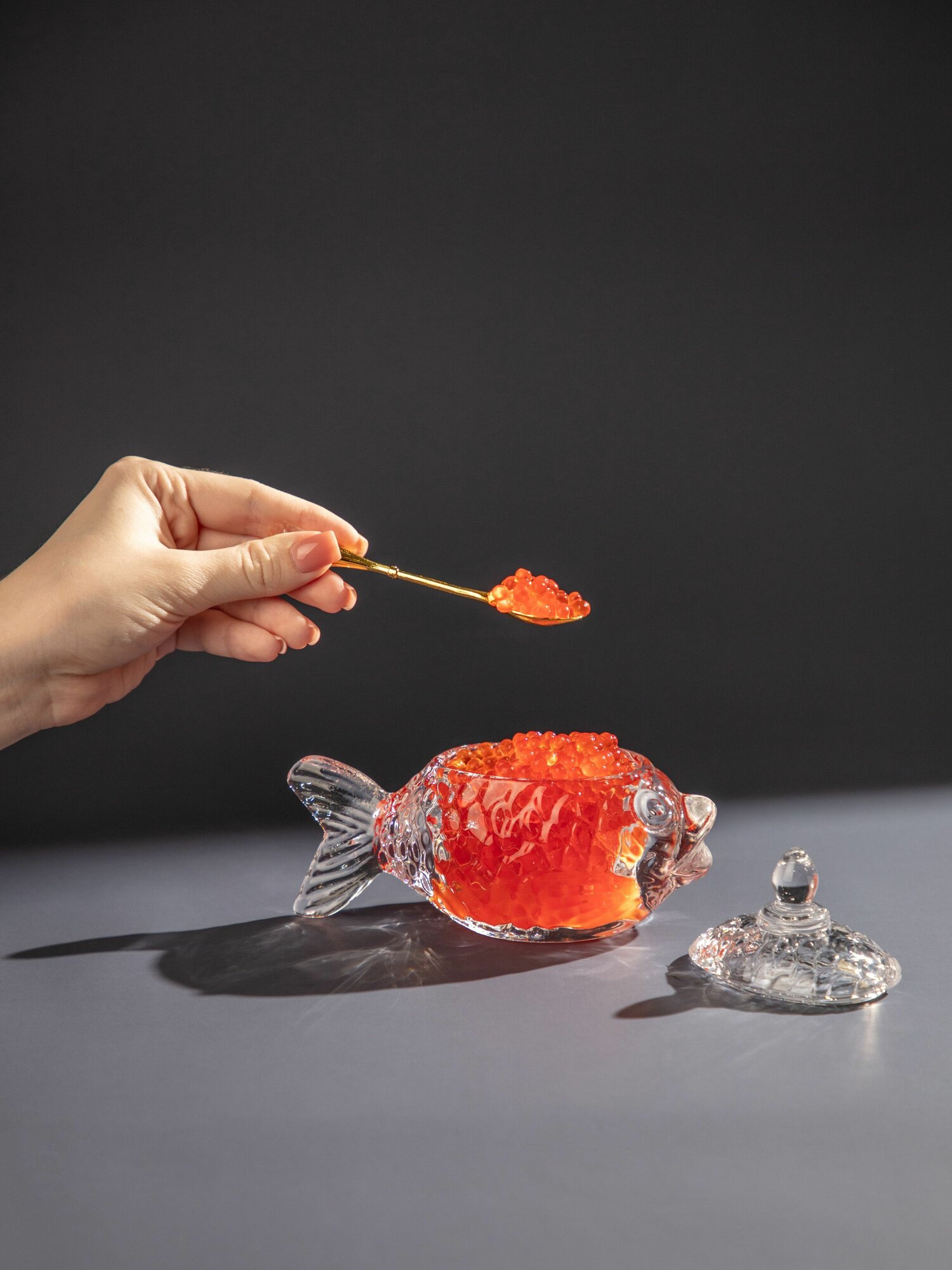 Купить Икорница стеклянная с крышкой и ложкой "Рыбка" Lefard 15 х 7 х 10 см
