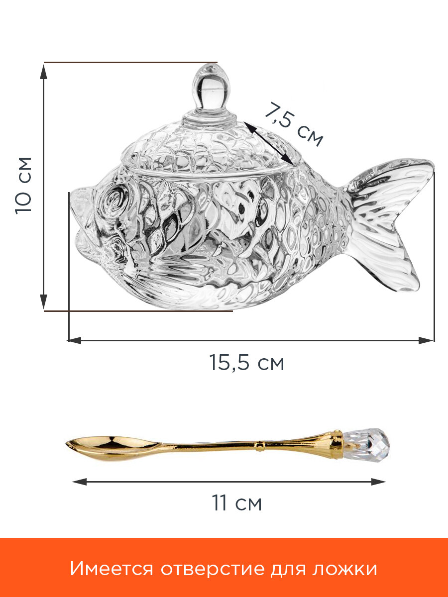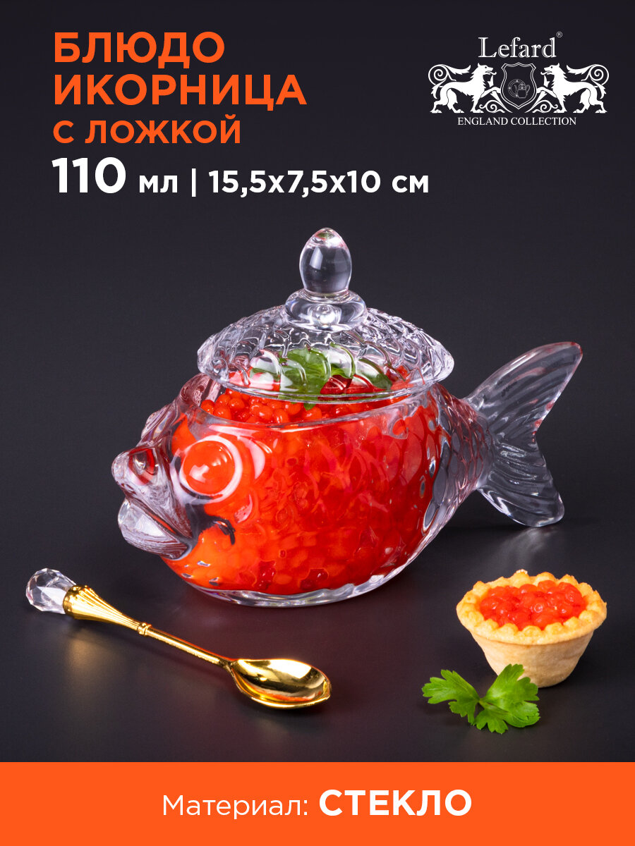 Икорница стеклянная с крышкой и ложкой "Рыбка" Lefard 15 х 7 х 10 см интересное: