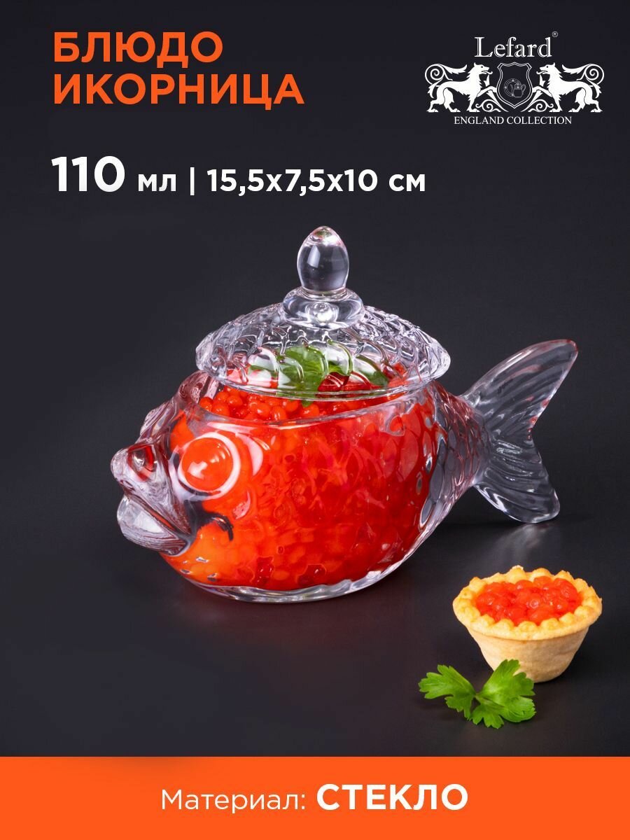 Икорница стеклянная с крышкой "Рыбка" Lefard 110 мл, 15,5 х 7,5 х 10 см интересное: