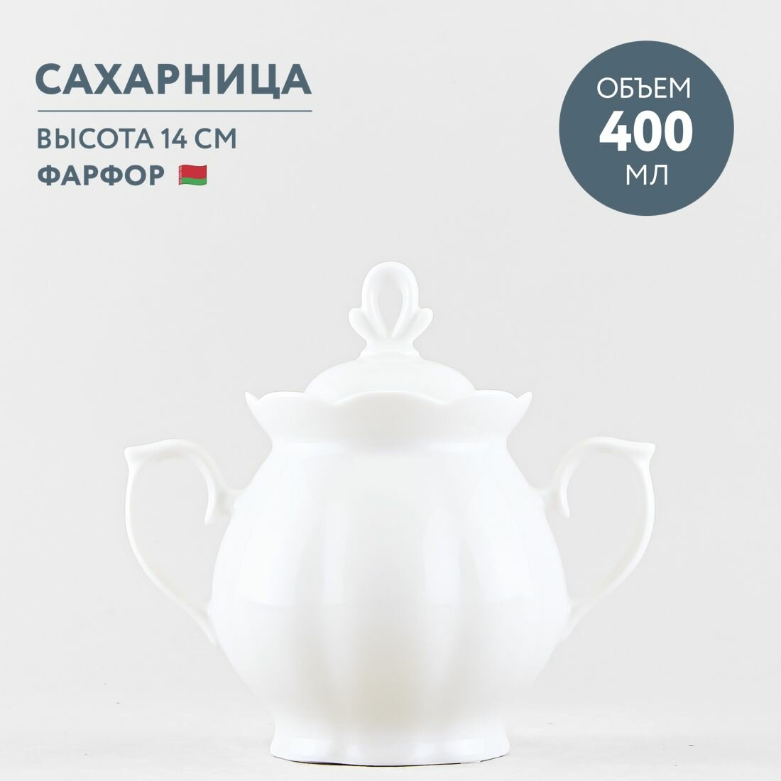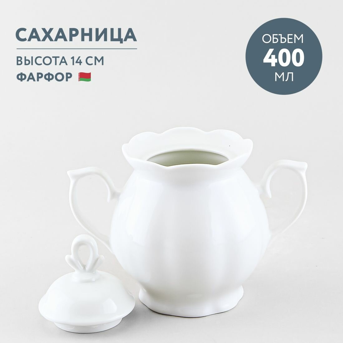 Сахарница фарфоровая с крышкой 370 мл Добрушский фарфор Белый интересное: