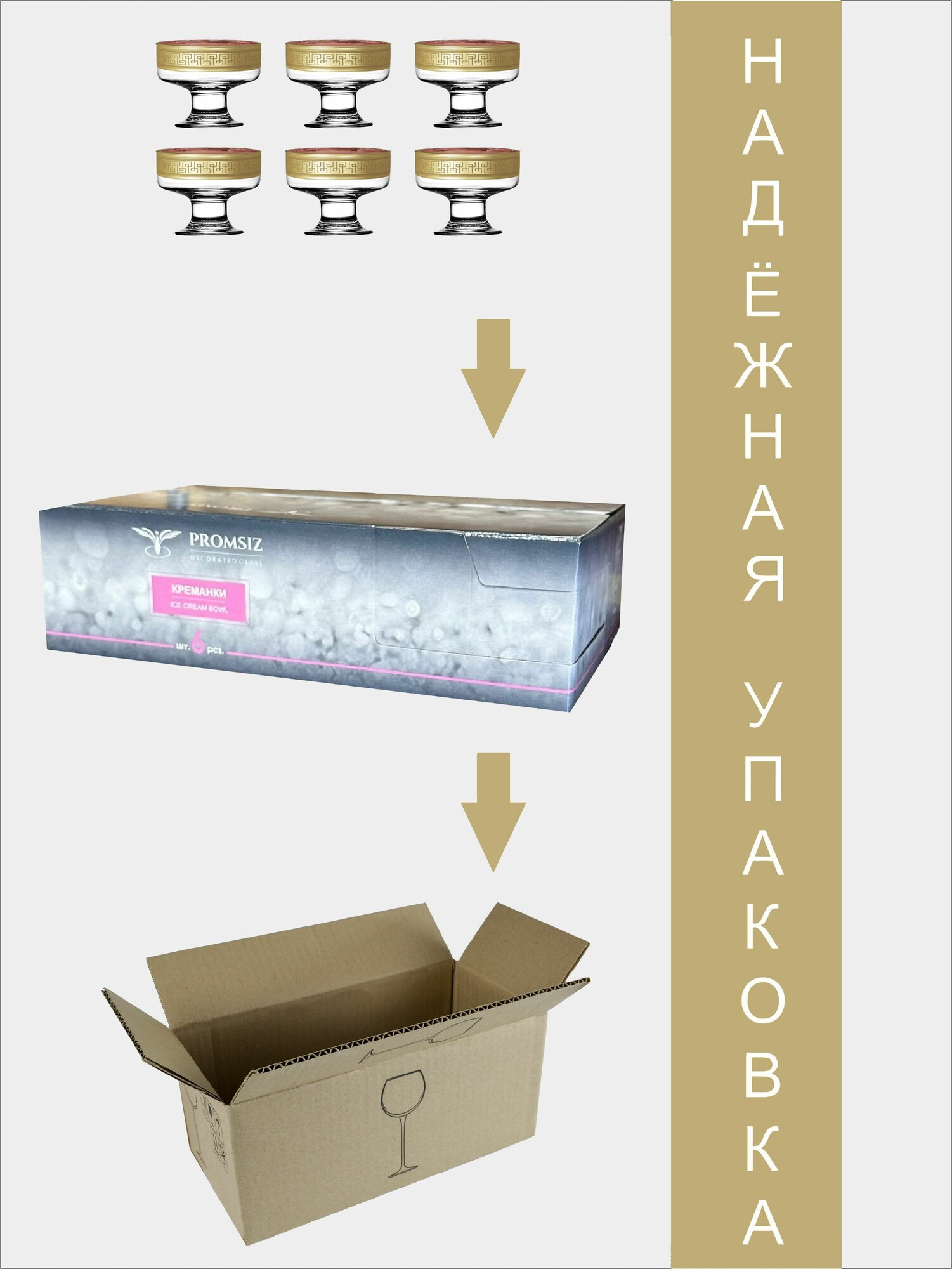 Набор стеклянных креманок с алмазной гравировкой в подарочной упаковке PROMSIZ греческий узор, 250 мл, 6 шт.