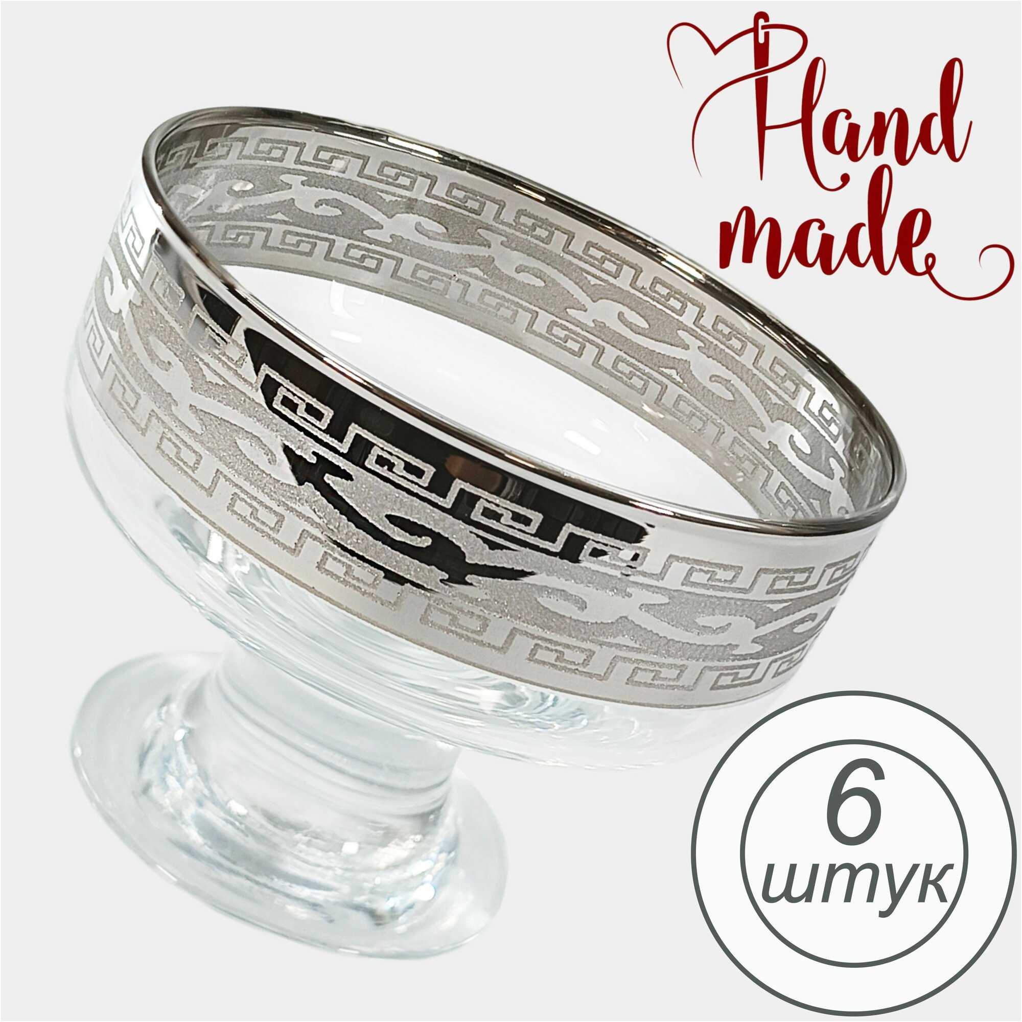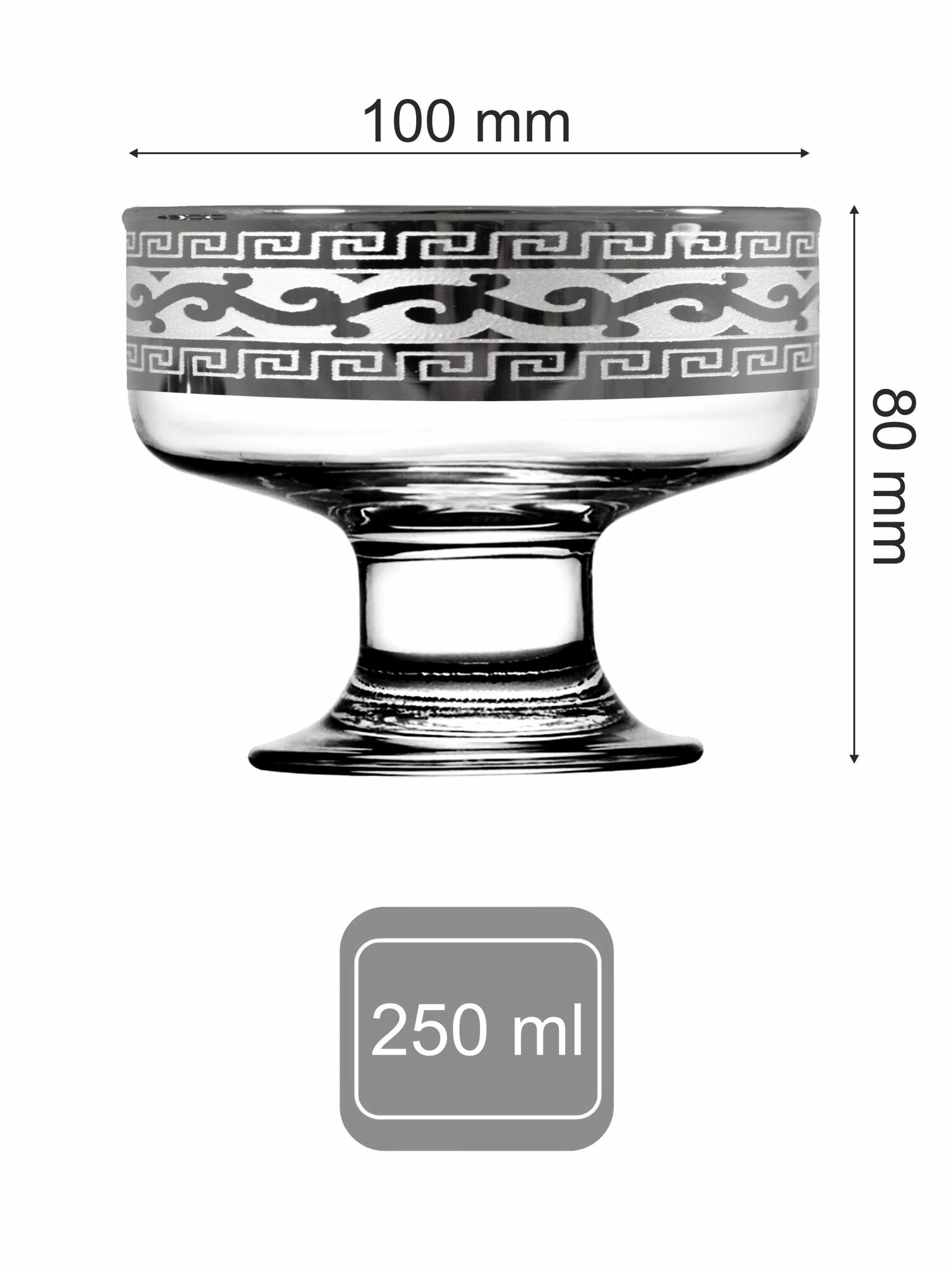 Набор стеклянных креманок с алмазной гравировкой в подарочной упаковке PROMSIZ греческий узор, 250 мл, 6 шт.