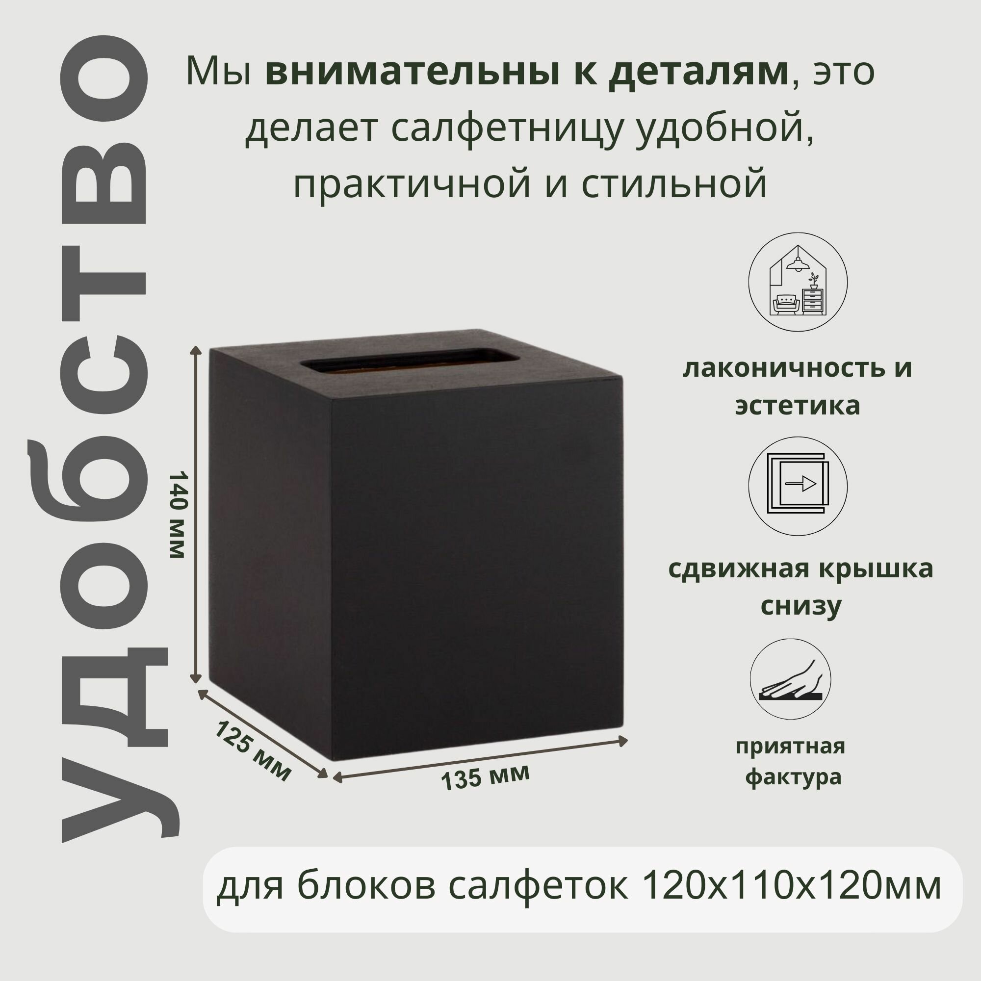Интерьерная салфетница COROBICO CuBe, дерево, цвет темно-серый, 135х122х136мм