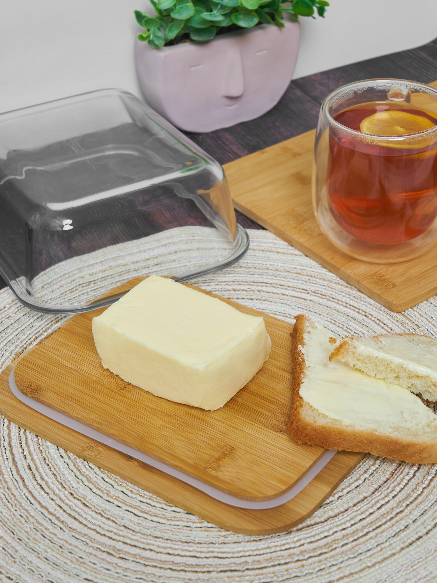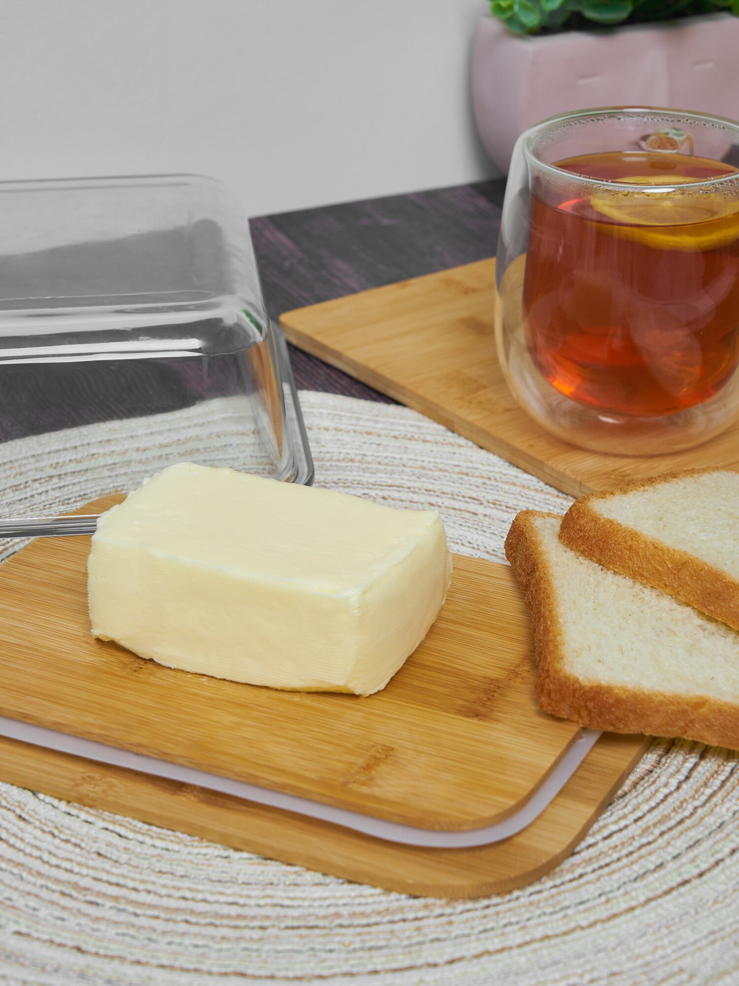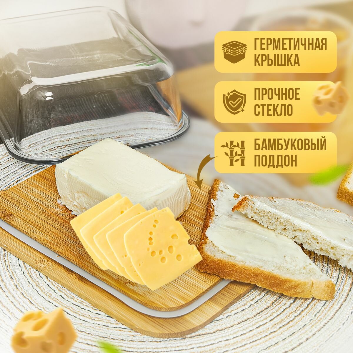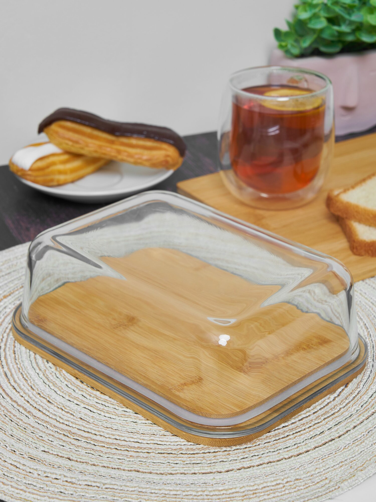 Масленка / сырница бамбуковая Kalinka со стеклянной крышкой, большая, 1040 мл, 19,5*14,8*6,0 см. интересное:
